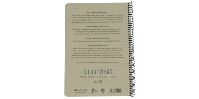 Tämä EKO-vihko on valmistettu ympäristöystävällisesti Suomessa. Kotimaisen kansikartongin pääraaka-aine on sahanpuru, jota on täydennetty ruskealla kierrätyspahvilla. Kiitos kun suosit ympäristömerkittyjä ja lähellä tuotettuja tuotteita.