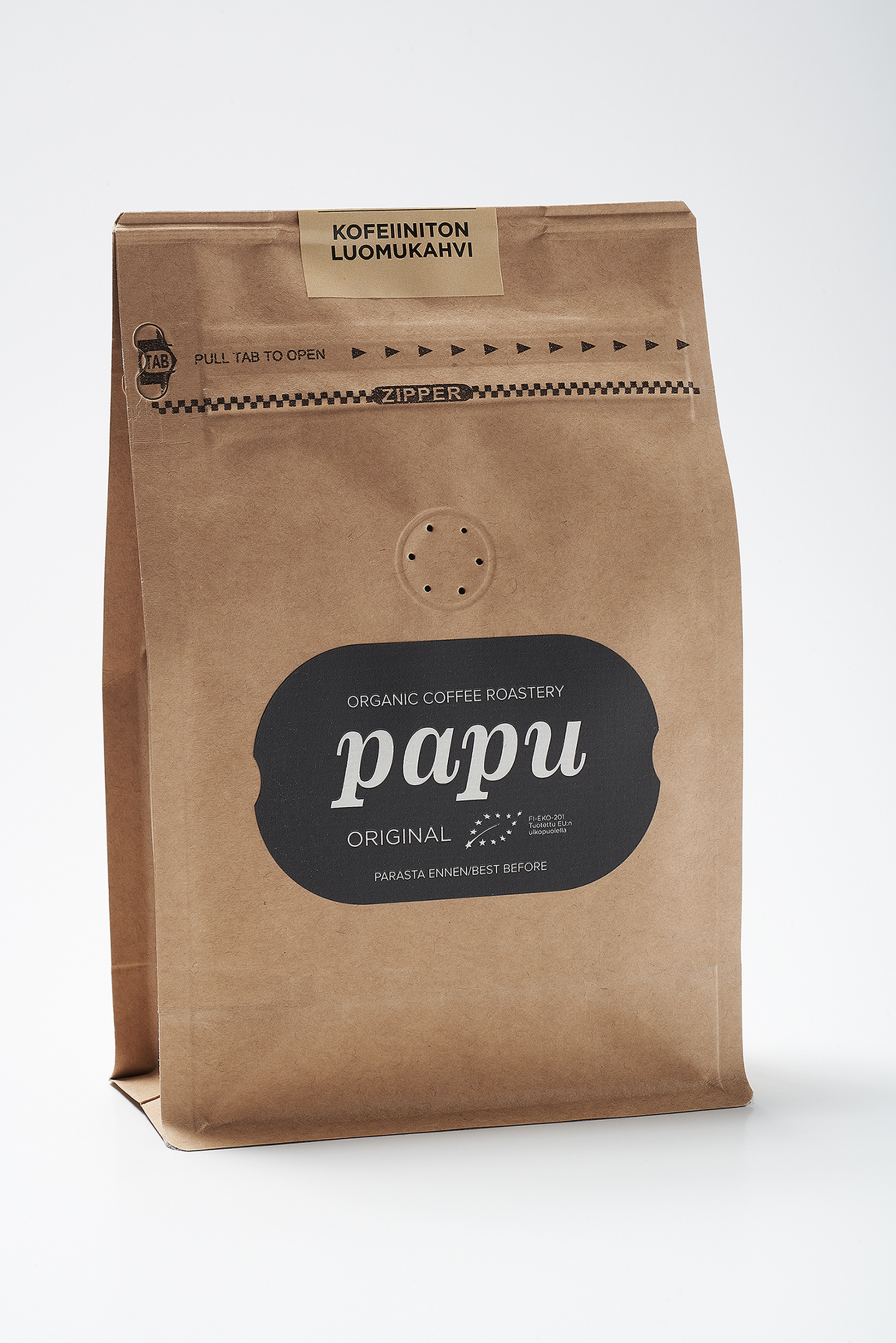 Kahvin alkuperämaa vaihtelee (Peru, Meksiko, Honduras, Colombia, Guatelmala). Kofeiini poistettu kahvista joko Swiss Water tai CO2 metetelmällä. Kahvi sopii hyvin suodatinkahviksi ja pressoon sekä espressoksi (kokonaisina papuina) esim. capucciinoon. Kofeiiniton kahvi joka maistuu kahville, ilman kofeiinia!