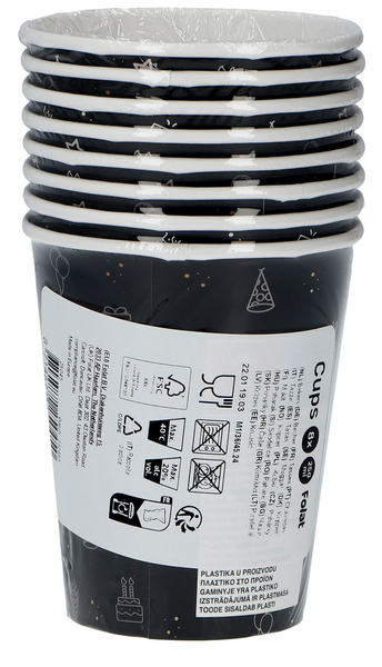 Kaunis Happy Birthday pahvimuki sopii moneen juhlaan. Mukin vetoisuus n. 250ml ja paketissa 8 kappaletta.