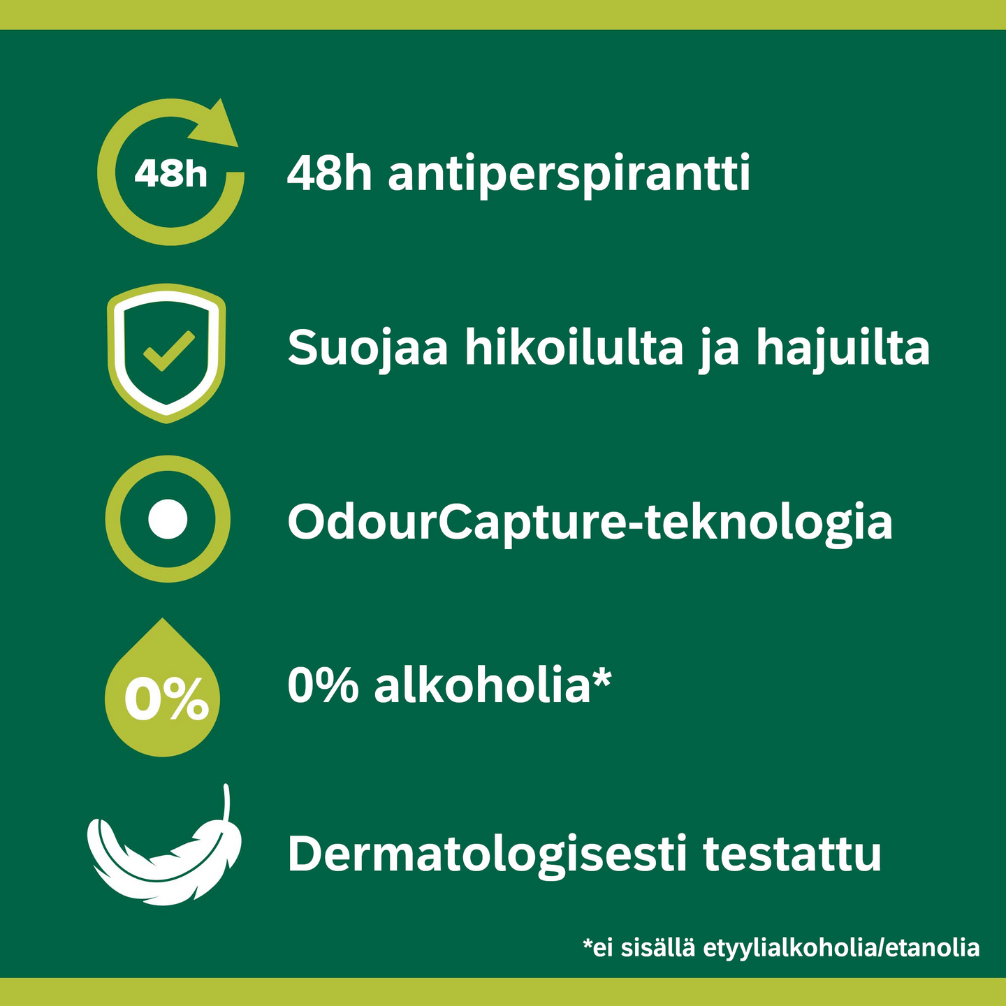 Tunne olosi itsevarmaksi aamusta iltaan Palmolive Men Pure Arctic -antiperspirantti sprayn avulla, joka pitää olosi raikkaana ja puhtaana koko päivän ajan sen tehokkaalla 48-tunnin suojalla hikoilua ja hajuja vastaan. Kestävän ja tehokkaan suojan lisäksi sillä on raikas ja sitruksinen tuoksu, joka virkistää mieltäsi läpi päivän.