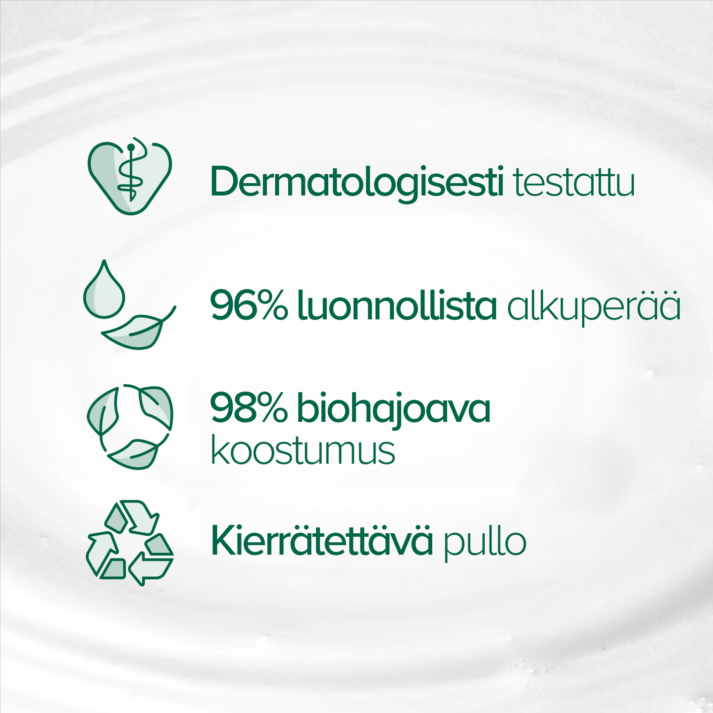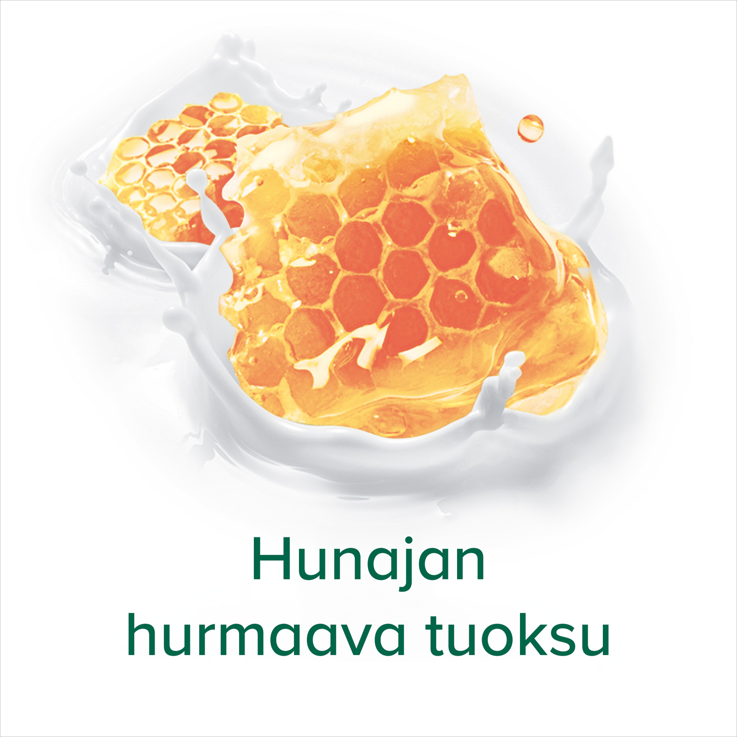 Hemmottele ihoasi Palmolive Naturals Milk & Honey -nestesaippualla, jonka dermatologisesti testattu koostumus sisältää hunaja-uutetta, kasviperäistä maitoa, sekä E-vitamiinia, joka huolehtii ihostasi. Saippuan ainutlaatuinen yhdistelmä mietoja pesuaineita ja ihoa hoitavia aineita jättää kätesi pehmeiksi ja ihanan tuoksuisiksi. Koostumus, joka on valmistettu 96% luonnollisista ainesosista. *Vesi, ja luonnolliset ainesosat, joita on käsitelty mahdollisimman vähän.
