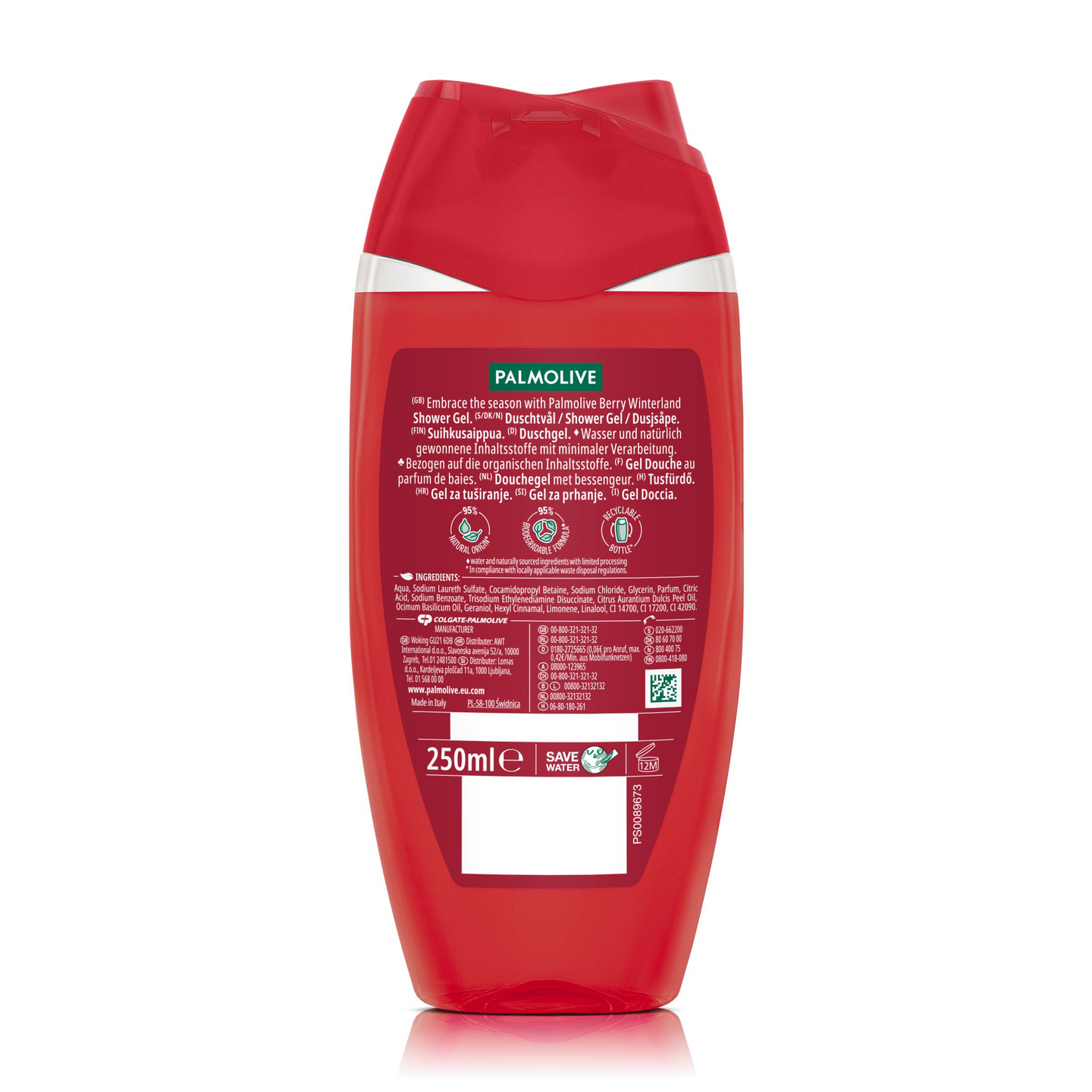 Tartu talveen ja anna aistiesi nauttia talvimarjojen tuoksusta Palmolive Berry Winterland -suihkusaippuaa käyttäessäsi. Nauti mehukkaiden karpaloiden lumoavasta tuoksusta, jota täydentää kypsien vadelmien makea vivahde.Tämä Limited edition -suihkusaippua sisältää 95% luonnollista alkuperää olevia ainesosia*, on 95% biohajoava ja pakattu kierrätettävään pulloon. Uppoudu talven hiljaiseen rauhaan. *Vesi ja luonnosta peräisin olevat, vain vähän prosessoidut ainesosat