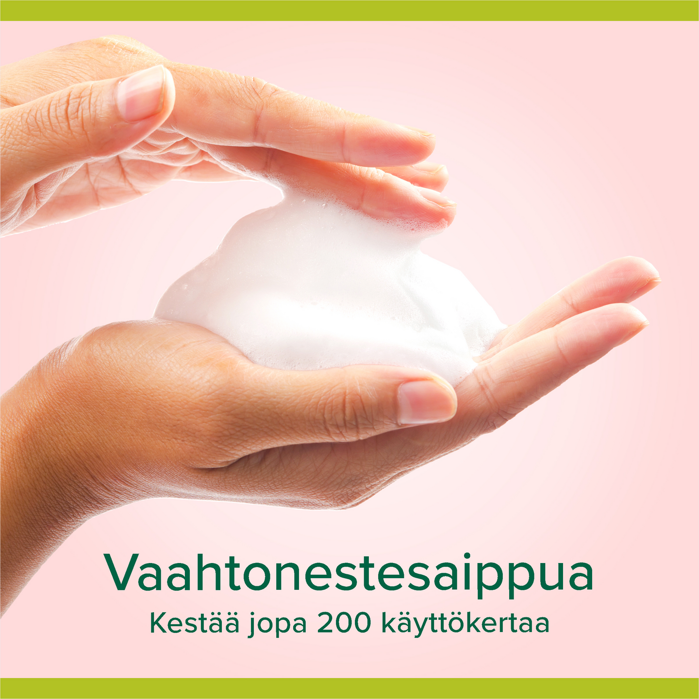 Hemmotele käsiäsi Luxury Foam Raspberry & Blackcurrant -vaahtonestesaippualla, jonka herkullinen marjojen tuoksu ja pehmeä vaahto tekevät käsienpesusta luksusta. Vaahtonestesaippuan erityinen pumppu vaahdottaa saippuan valumattomaksi ja riittoisaksi vaahdoksi, joka kestää jopa 200 pesua. Tämän vegaanisen käsisaippuan koostumus on 95% luonnollista alkuperää* sekä 95% biohajoava, ja sen pullo on kierrätettävä. *Vesi ja luonnolliset ainesosat, joita on käsitelty mahdollisimman vähän.