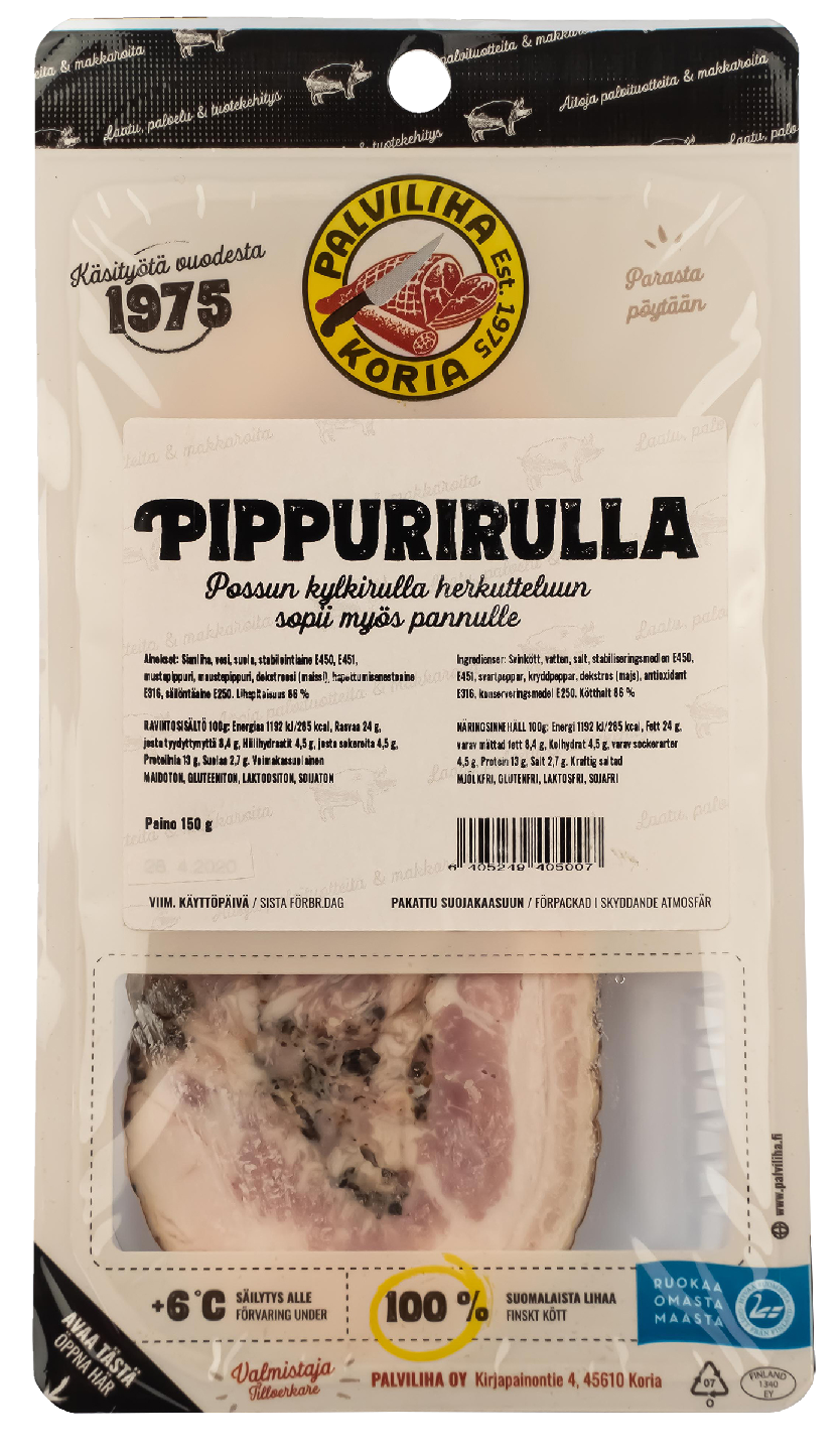Porsaan kyljestä valmistettu miedolla pippurilla maustettu leikkele