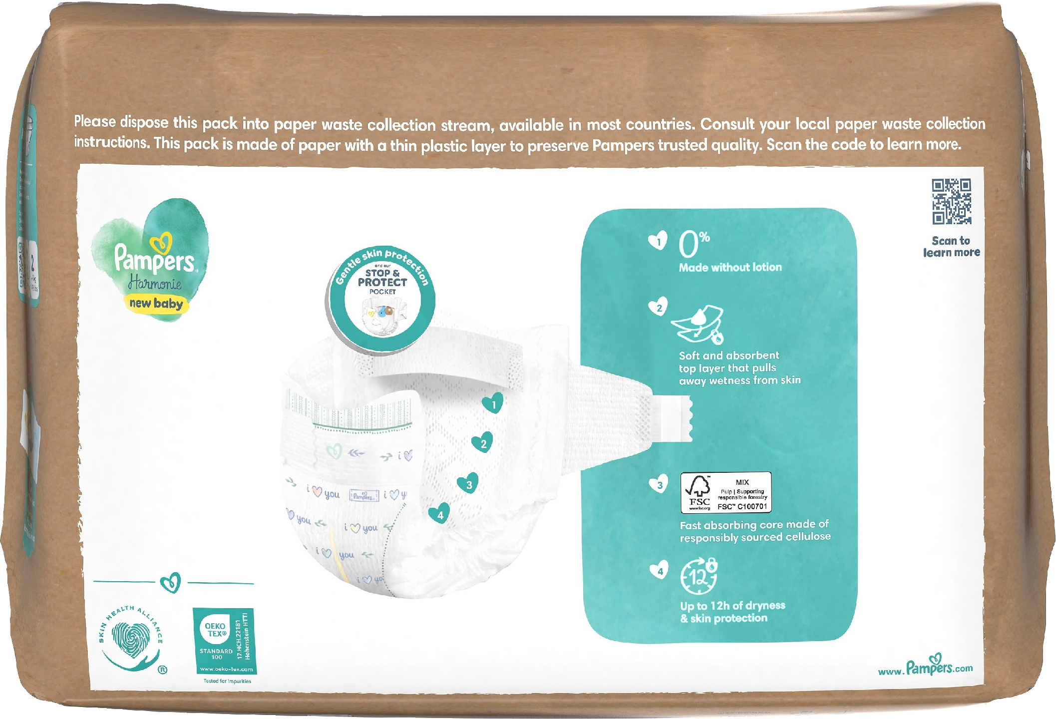Vauvasi tarvitsee yksinkertaisia asioita, kuten rakkautta ja hellävaraista kosketusta. Pampers Harmonie -vaipat on suunniteltu suojaamaan vauvan herkkää ihoa vain huolellisesti valittujen ainesosien avulla. Ne sisältävät 0 % voidetta, ovat Skin Health Alliancen ihotautilääkäreiden* hyväksymiä ja OEKO-TEX Standard 100 -sertifioituja. Ne takaavat jopa 12 tunnin kuivuuden ja suojan iholle, joten voit vanhempana luottaa niiden laatuun. Takaosan Stop & Protect -tasku auttaa ehkäisemään vuotoja. Imukykyinen ydin on valmistettu selluloosasta, joka on peräisin vastuullisesti hoidetuista, FSC-sertifioiduista metsistä ja muista valvotuista lähteistä. Pampers Harmonie -vaipoissa on suloinen painatus ja Pampersin kätevä kosteusilmaisin: tulette ihastumaan niihin! Jos haluat tietää lisää Pampersin käyttämistä ainesosista, käy osoitteessa pampers.fi. *SHA on hyväksynyt Pampers-vaipat turvallisiksi kosketuksissa vauvan ihon kanssa. Lue lisää osoitteesta pampers.fi