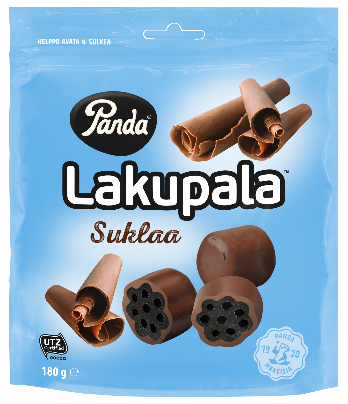 Panda Lakupala suklaassa ensimmäisenä kielesi kohtaa samettisen suklaan, jonka jälkeen makunystyröitä hivelee aidon ja oikean Panda-lakun pehmeys. Lakusuosikki on pukenut ylleen ylellisen maitosuklaisen asun. Tähän ei voi kuin ihastua!