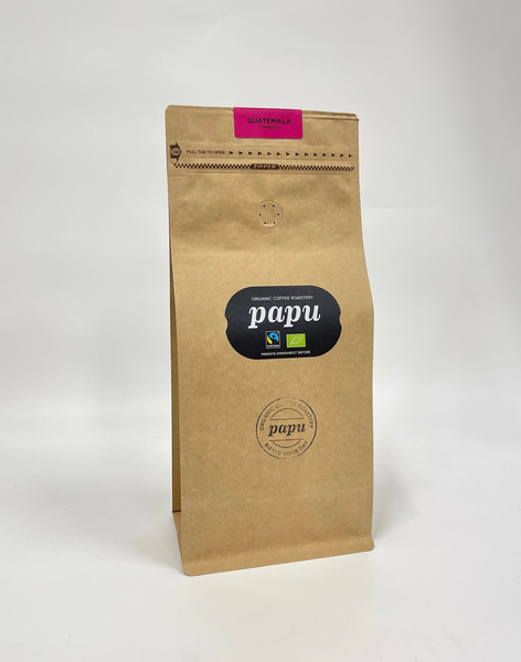 Reilun kaupan lomusertifioitu osuuskuntakahvi Guatemalasta. Espressopaahto. Paahtoaste 4/5. Erinomainen espresso kaikkiin espressojuomiin. Keskihapokas ja suklaa-arominen.