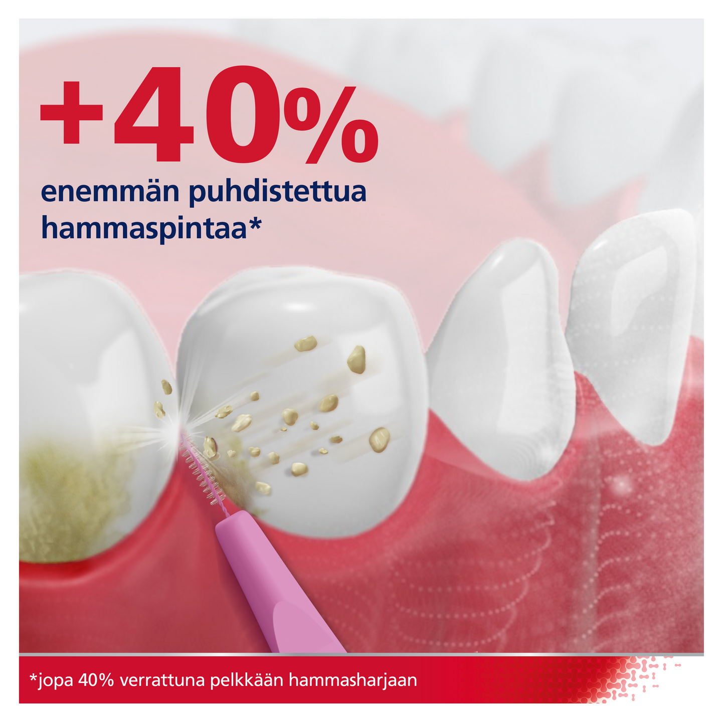 parodontax-hammasväliharjat puhdistavat jopa 40 % enemmän hammaspintaa verrattuna pelkkään hammasharjaan. Ne puhdistavat hammasvälit hellävaroen ja poistavat tehokkaasti plakin ja ruoanjäämät. Hammasväliharjat eivät sisällä muovia. Varsi on valmistettu sertifioidusta biomuovista (mäntyhartsi) ja selluloosasta, ja myös harjakset on valmistettu uusiutuvista raaka-aineista. Hammasväliharjat toimitetaan kierrätettävässä pahvipakkauksessa, ja mukana tulee hygieeninen suojus. - Puhdistavat jopa 40 % enemmän hammaspintaa verrattuna pelkkään hammasharjaan - Poistavat tehokkaasti plakin ja ruoanjäämät - Puhdistavat hammasvälit hellävaroen - Kierrätettävä pahvipakkaus. Ei sisällä muovia.