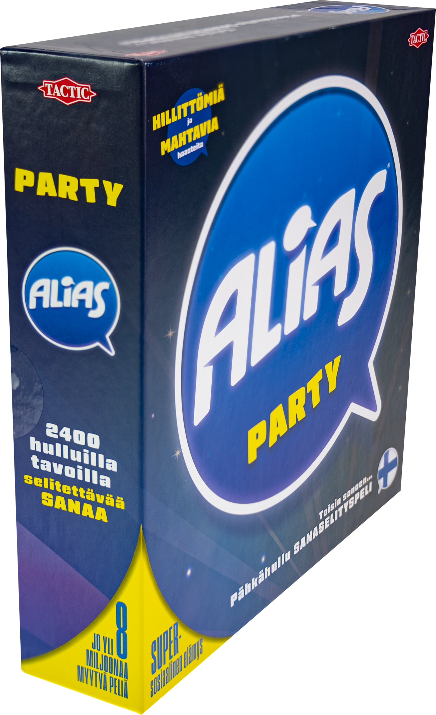 Selitä sanat kuten ennenkin, mutta ota huomioon Party-ruudut! Kun saavut sellaiseen, hulvattomat selitystyylit otetaan käyttöön. Pelin sisältö on värikkäämpi ja haastavampi kuin muissa Alias-peleissä. Sanakorttien sisältö on vaihteleva. Peli sopii täydellisesti aikuisille. Valmistettu Suomessa. Ikäsuositus: 15+ v. Pelaajien määrä: 4+. Pelin kesto: 45+ min.
