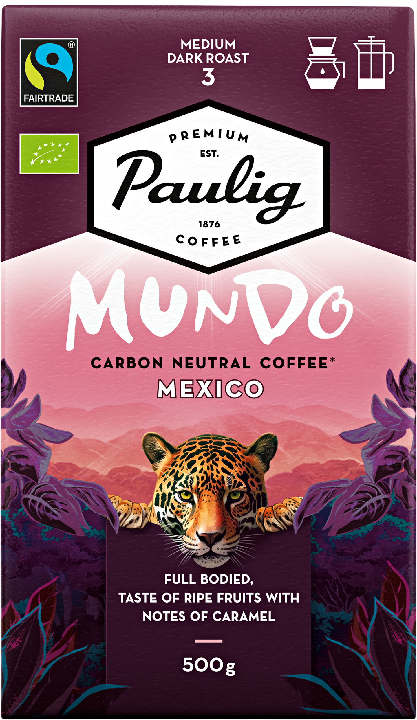 MUNDO MEXICO on erittäin laadukas yhden alkuperämaan kahvi, jonka ryhdikkäässä maussa korostuvat karamelliset sekä kypsän hedelmäiset vivahteet. Sen keskitumma paahtoaste tuo papujen ominaismaut tyylikkäästi esiin ja korostaa kahvin pehmeää luonnetta. Mundo Mexico on Reilu kauppa -sertifioitu ja auditoitu kahvi (100%), joka on hankittu Reilun kaupan tuottajilta. Kahvipavut ovat luonnonmukaisesti viljeltyjä.