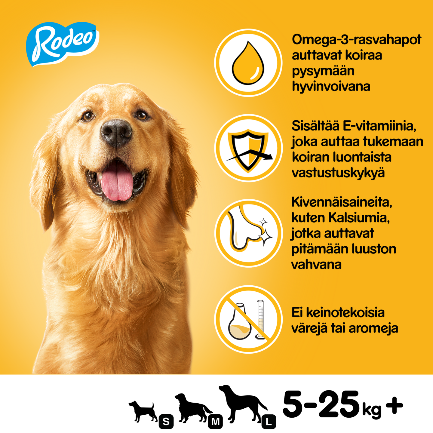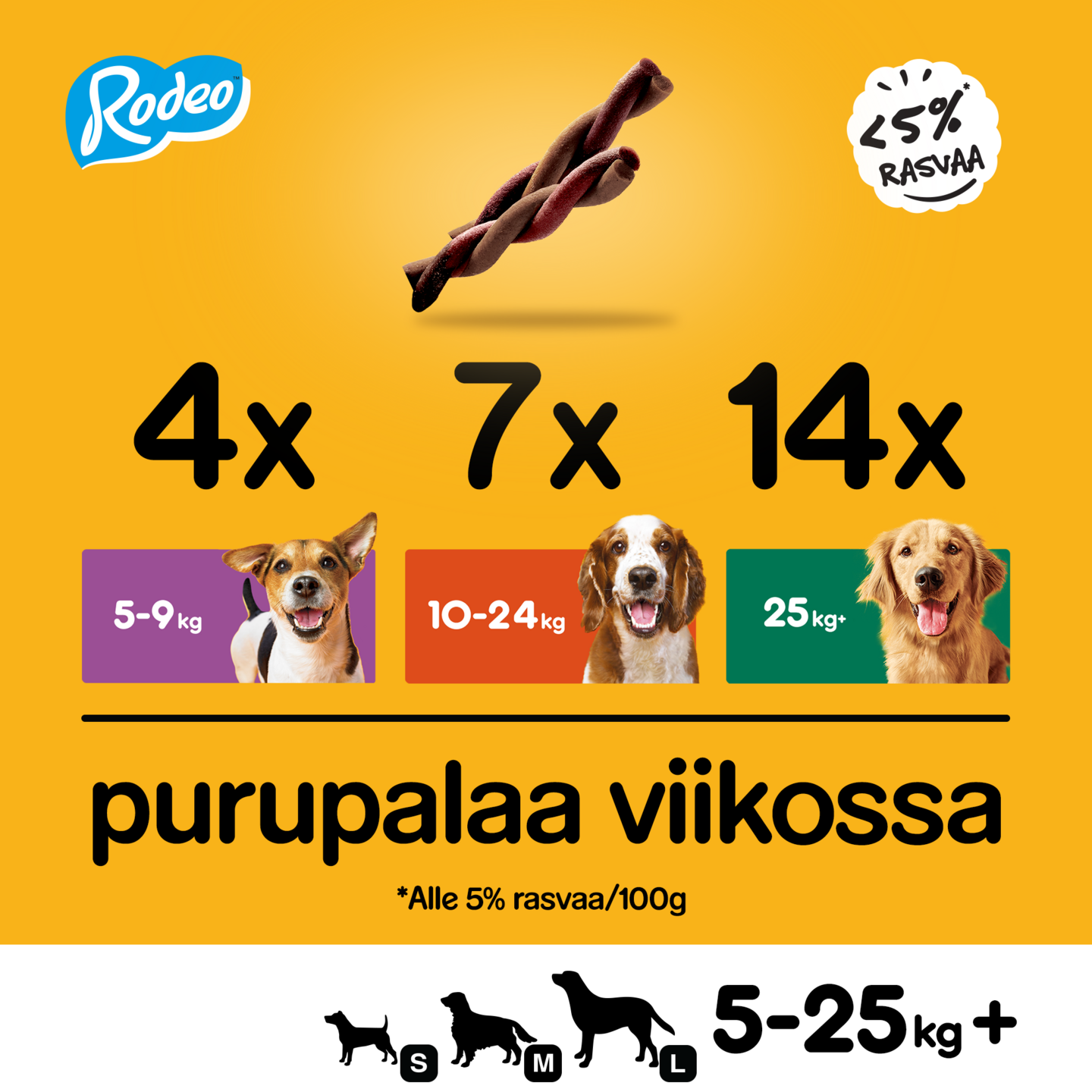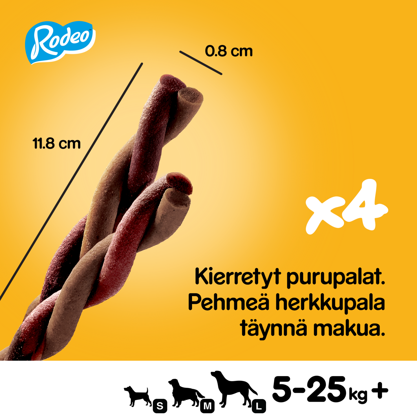 Pedigree® Rodeo® -makupalat soveltuvat loistavasti niin koiran palkitsemiseen kuin kiintymyksen osoittamiseen. Niiden ainutlaatuinen kierteinen muoto, vastustamattoman lihaisan maku ja mukava purutuntuma tuottavat koiralle pitkään kestävää nautintoa. Koirista on mukava etsiä. Kierteiset Rodeo™-purutikut maistuvat koirille. Ne ovat oikea valinta päivittäiseen hemmotteluun. Niiden ainutlaatuinen kierremuoto tekee rakenteesta mieluisan. Niitä voi nauttia leikittäessä ja hetkinä, jolloin kiintymyssuhde vahvistuu.