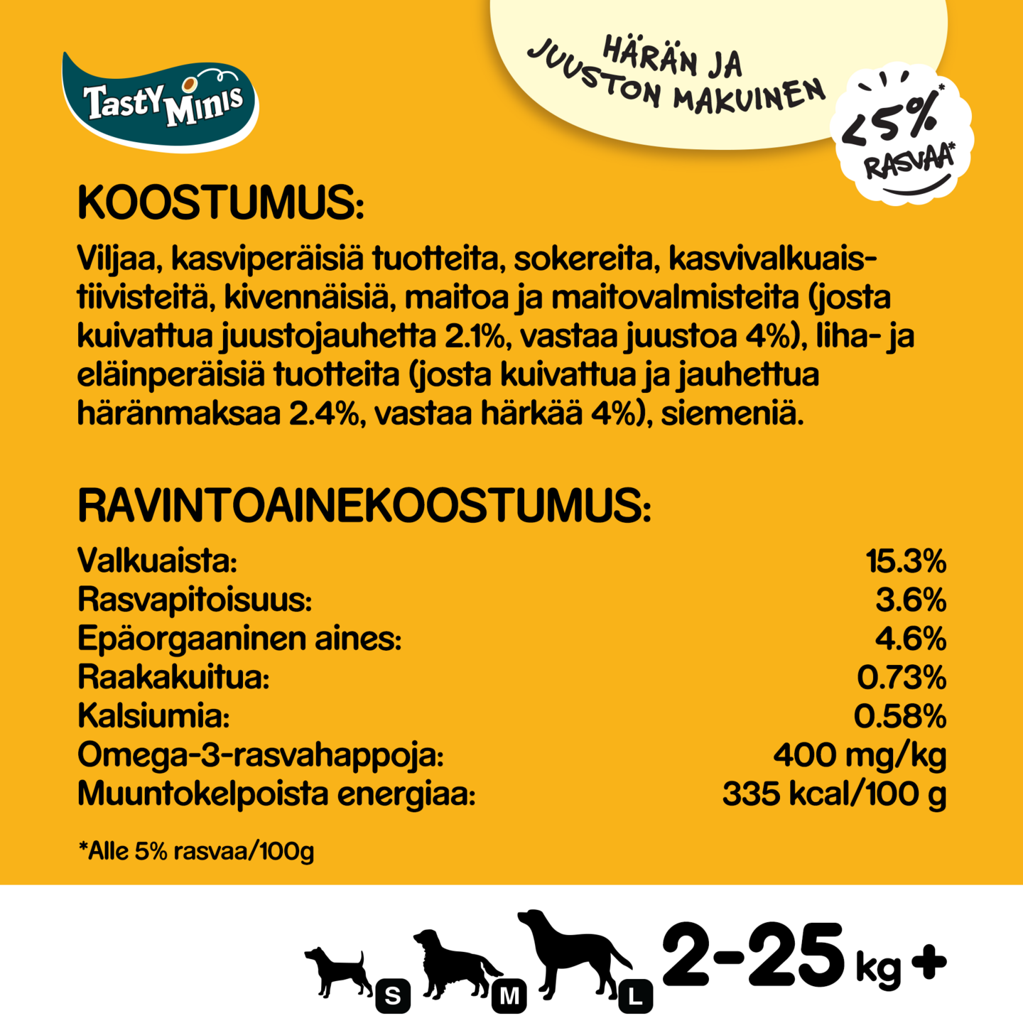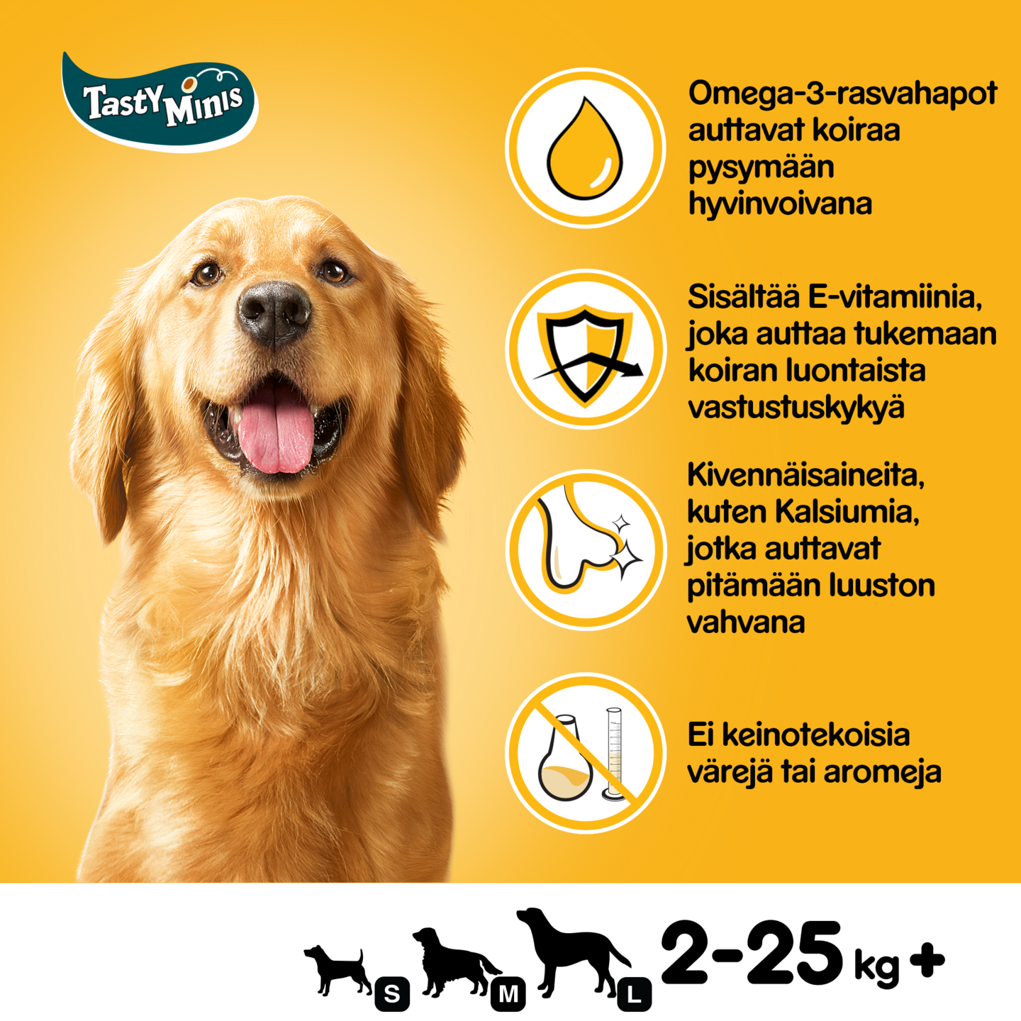Pedigree® Tasty Bites Cheesy Bites -makupalat ovat niin herkullisia, että koirasi odottaa niitä kieli pitkällä. Juustolta ja lihalta maistuvat Pedigree® Tasty Bites Cheesy Bites -makupalat ovat pieniä ja pehmeitä – ne ovat ihanteellisia mukaan otettaviksi herkuiksi.