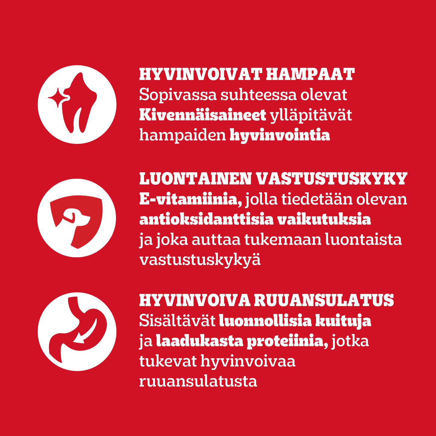 100% MUREITA paloja, joissa TUORE siipikarjan maku, josta koirasi pitää. Sopivan kokoiset palat. Hyvinvoivat hampaat: Sopivassa suhteessa olevat Kivennäisaineet ylläpitävät hampaiden hyvinvointia Luontainen vastustuskyky: Reseptimme sisältävät E-vitamiinia, jolla tiedetään olevan antioksidanttisia vaikutuksia ja joka auttaa tukemaan koirasi luontaista vastustuskykyä. Hyvinvoiva ruuansulatus: Tuotteemme sisältävät luonnollisia kuituja ja laadukasta proteiinia, jotka tukevat hyvinvoivaa ruuansulatusta PEDIGREE® auttaa kaikkia koiria elämään täysipainoisesti joka päivä. Valmistamme ravintoa asiantuntemuksella ja tavalla, joka konkreettisesti helpottaa koiranomistajia tarjoamaan koirille niiden ansaitsemaa rakkautta ja huolenpitoa.