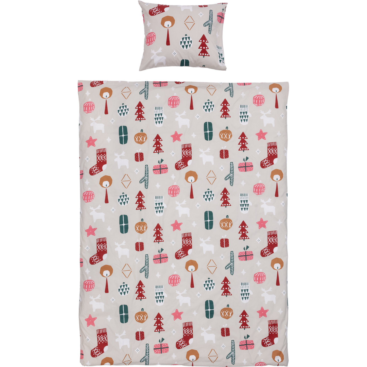 Riemukkaasti kuvioidut Aatto-pussilakanat nostavat hymyn huulille. Kuosin graafiset kuviot ovat tuttuja suomalaisesta jouluperinteestä. Aatto-kuosin on suunnitellut Minna Niskakangas. Pussilakanasettiin sisältyy 150x210 cm pussilakana sekä 50x60 cm kokoinen tyynyliina. Valmistettu 100% puuvillaperkaalista, joka on vuodevaatteissa yleisimmin käytetty, tiheään kudottu, helppohoitoinen ja mattapintainen materiaali. Se tuntuu ihoa vasten ylelliseltä ja miellyttävältä. Tuotteen lankaluku eli kankaantiheys (TC) on TC200. Kestää konepesun 60 asteessa. Öko-Tex -sertifioitu tekstiili.