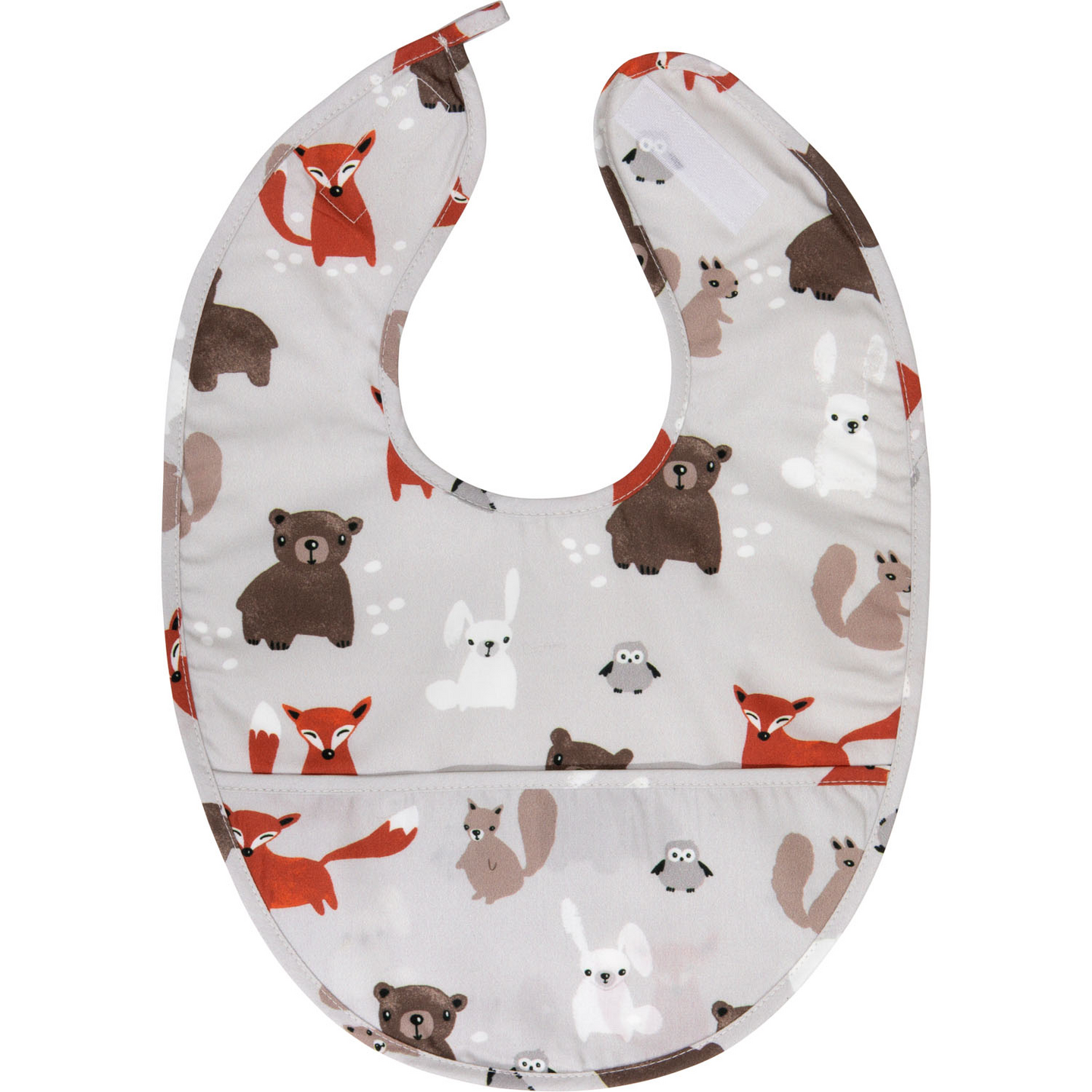 Minna Niskakankaan Metsänväki-kuosi hurmaa niin pienet tytöt ja pojat kuin heidän vanhempansakin! Veikeässä, tyylitellyn graafisessa ruokalapussa poseeraavat tutut metsiemme asukkaat kettu, karhu, jänis, pöllö ja orava. 28x39 cm kokoinen ruokalappu on valmistettu puuvillasta ja akryylistä. Pesu 40 asteessa varovaisella ohjelmalla. Suomessa suunnitellulla tuotteella on Design from Finland -merkki.