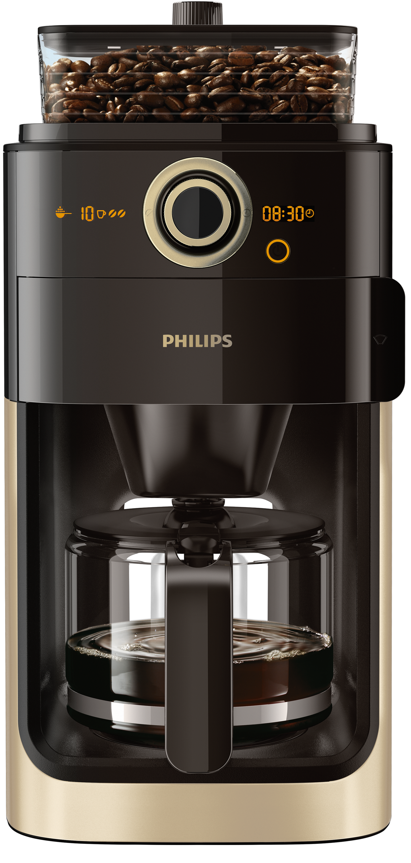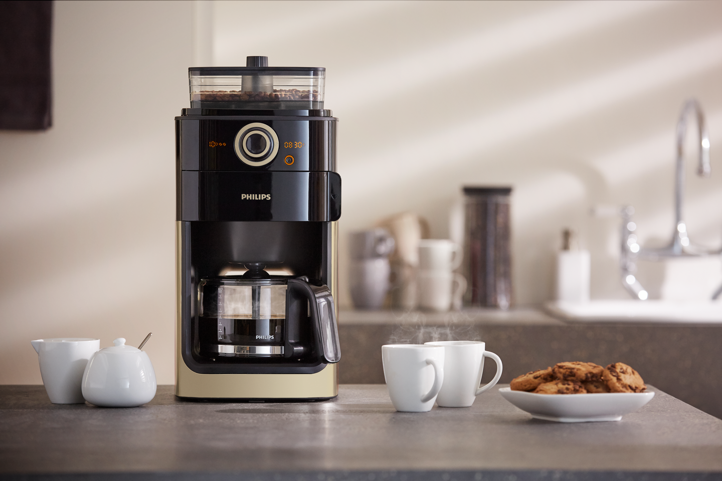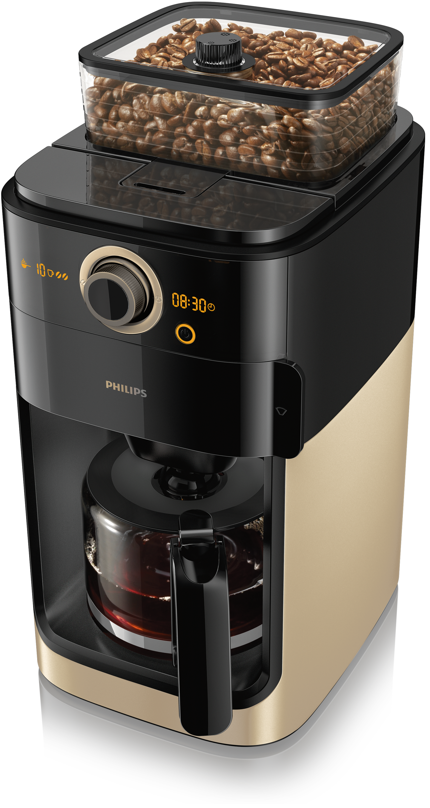 Philips Grind & Brew -kahvinkeittimen integroidun kahvimyllyn ansiosta voit valmistaa kahvia vastajauhetuista kahvipavuista. Kiitos ajastimen, voit herätä tuoreen kahvin tuoksuun. Valintatoiminnolla voit säätää kahvin vahvuuden.
