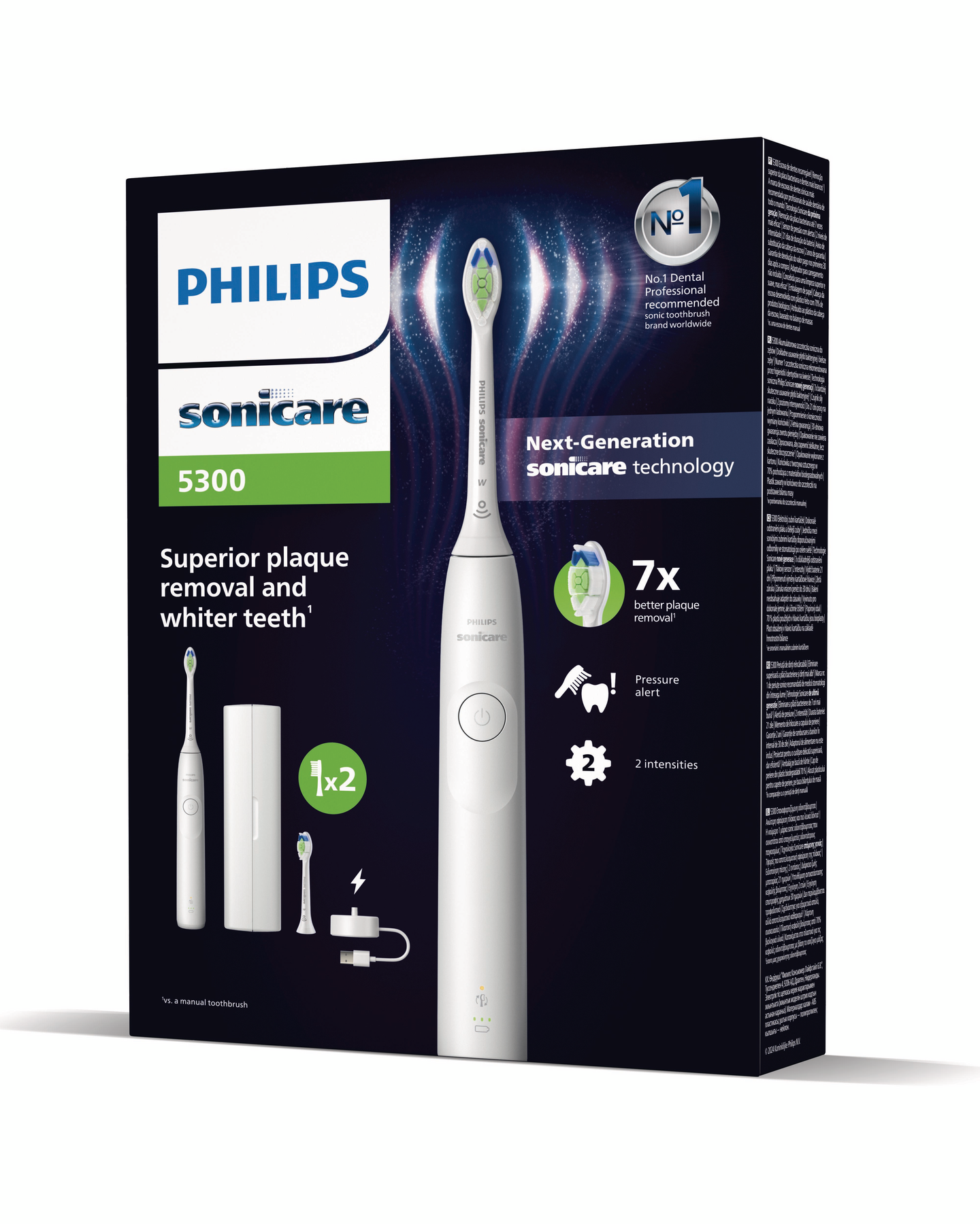 Philips Sonicare 5300 -sähköhammasharjassa on käytössä uuden sukupolven Sonicare-tekniikka ja 2 harjaustehoa. Lisäksi harja varoittaa, jos painat liian kovaa. Mukana kaksi valkaisevaa harjaspäätä.