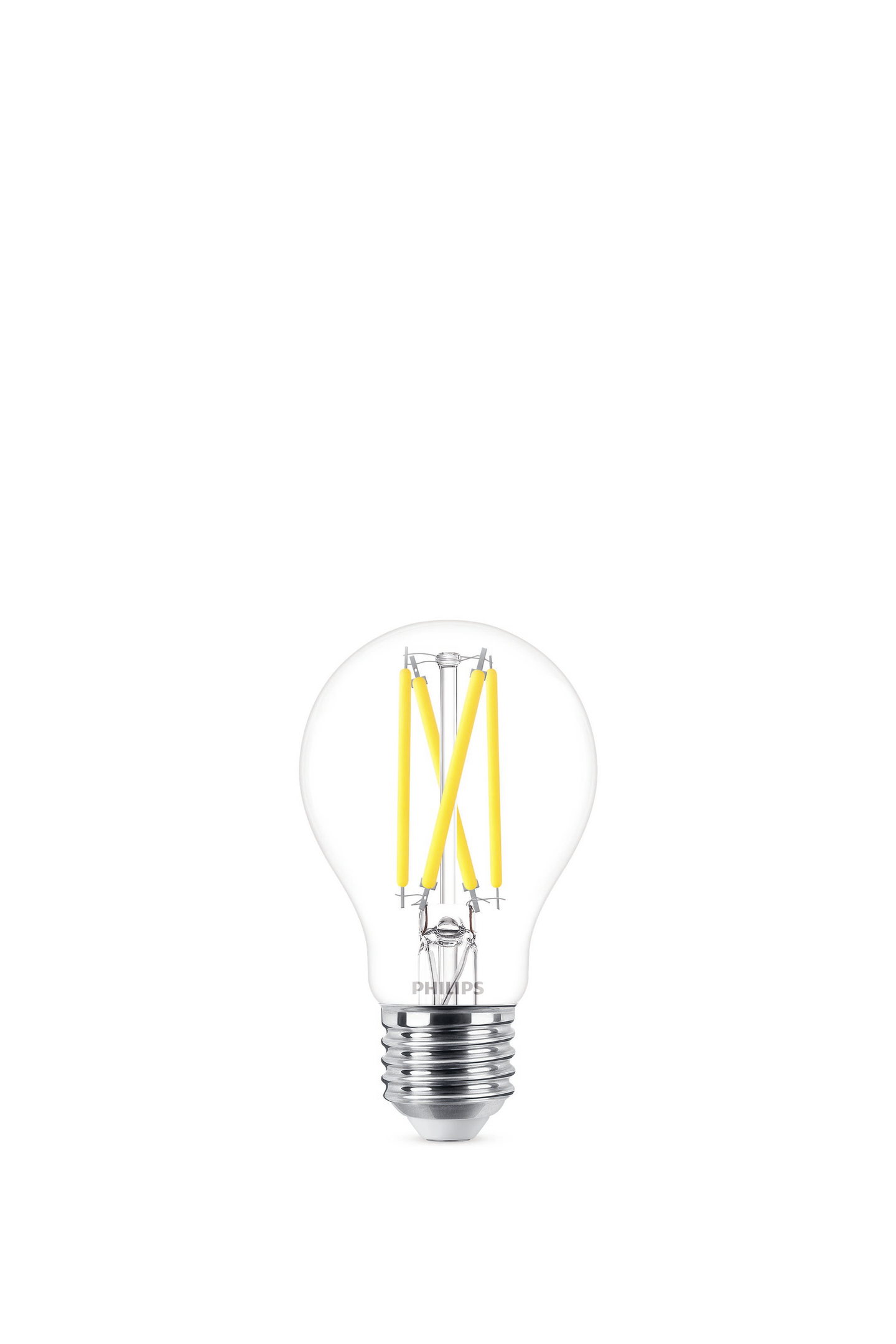 Philips LED -vakiolampun värilämpötila 2700K (lämmin valkoinen), se sopii useimpiin valaisimiin sen E27-kannan ansiosta ja sen käyttöikä on jopa 15 000 tuntia. Lampun LED-valo tuottaa silmillesi sopivaa valoa.