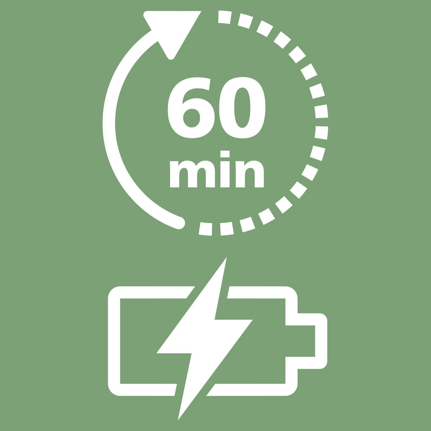 Kestävä akku tarjoaa jopa 60 minuuttia käyttöaikaa tehokasta yhtäjaksoista trimmausta varten.