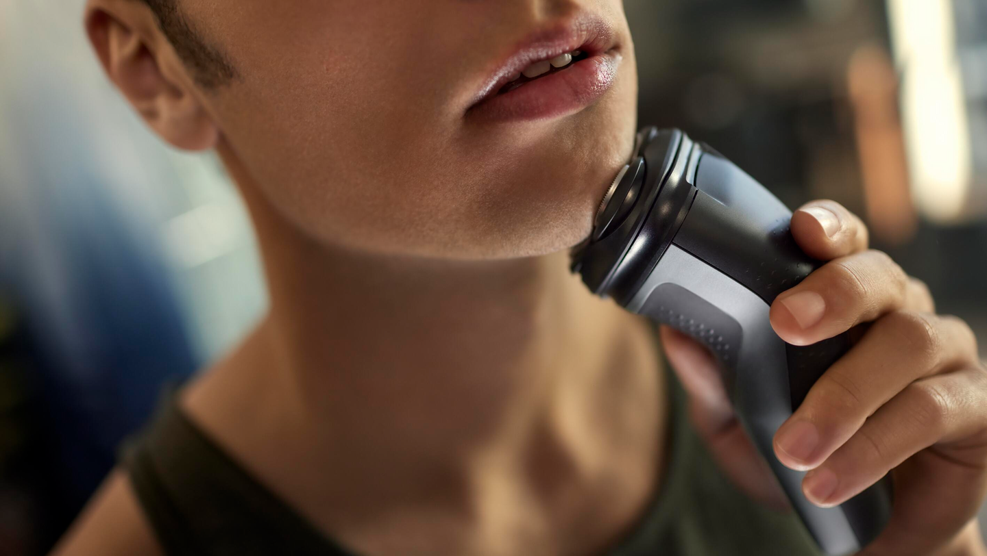 Huuhtele juoksevalla vedellä tai aja parta suihkussa. Parranajokoneella on IPX7-vedenpitävyysluokitus, joten se kestää upottamisen korkeintaan metrin syvyyteen 30 minuutin ajaksi.
