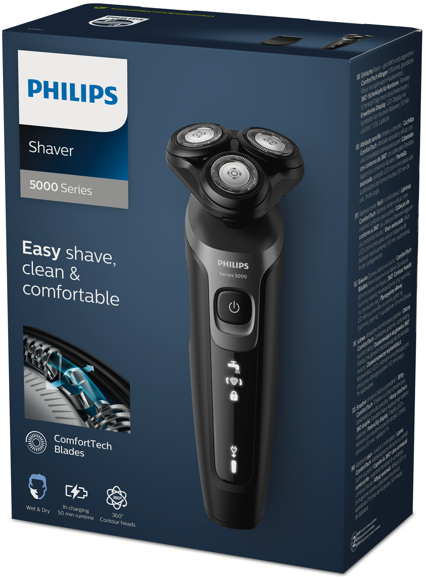 Philips Shaver Series 5000 -parranajokone tuo mukavuutta aamurutiineihisi. Parranajokoneen käyttö on intuitiivista täysin joustavan pään ja ergonomisen muotoilun ansiosta. Kätevän avauspainikkeen ansiosta se voidaan puhdistaa helposti muutamassa sekunnissa.