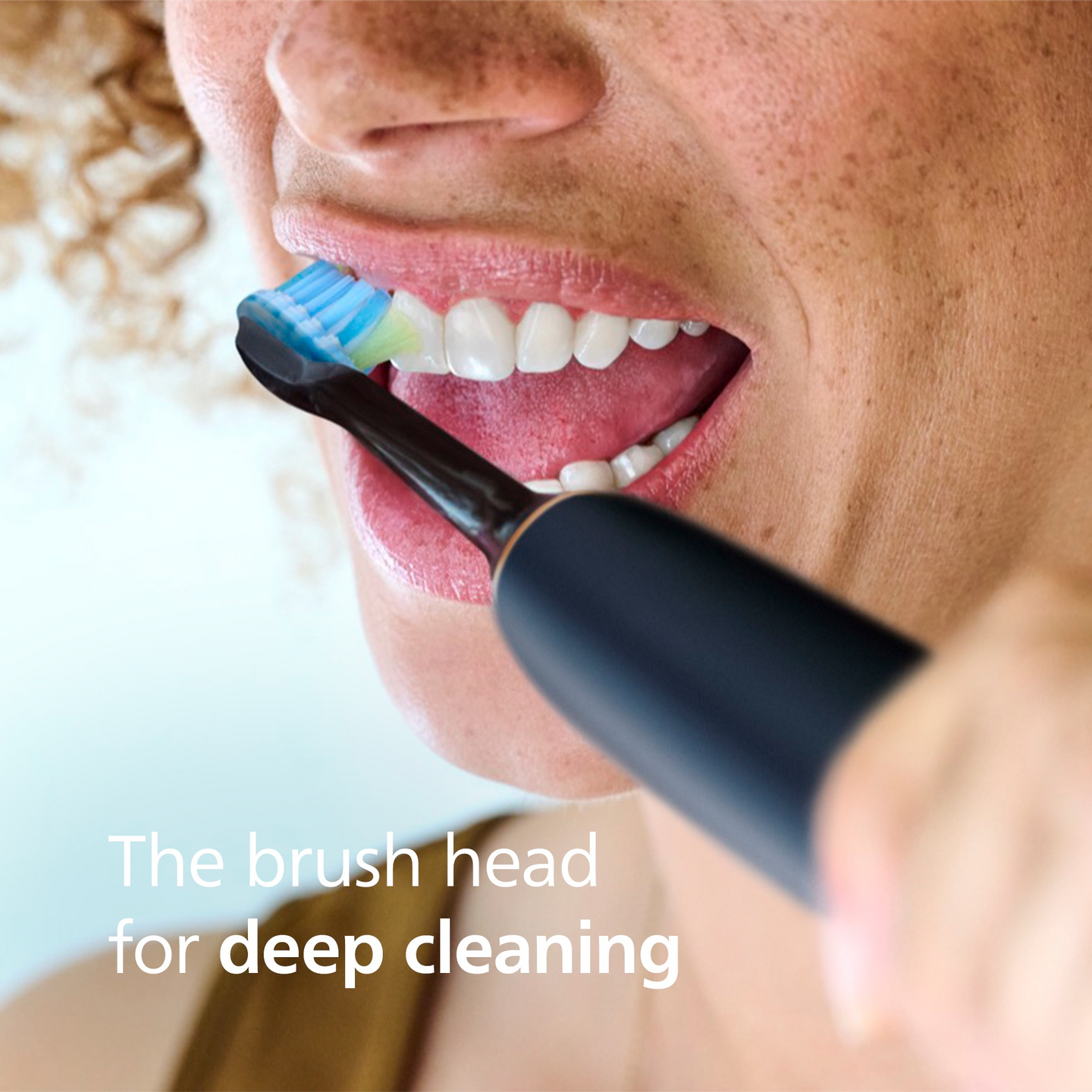 Philips Sonicare -hammasharjat puhdistavat hampaat ja ikenet hellävaraisesti mutta tehokkaasti jopa 62 000 harjasten liikkeellä. Dynaaminen nestetoiminto tukee harjasten puhdistustehoa ohjaamalla nestettä syvälle hampaiden väliin ja ienrajaa myöten.