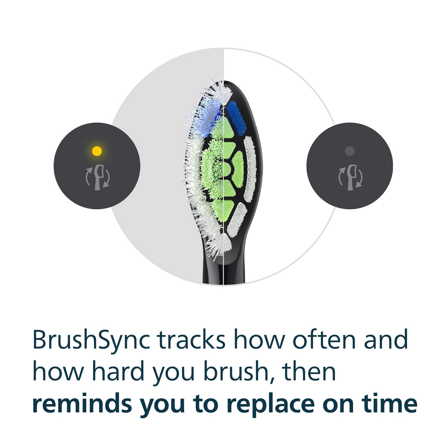 Vaihtoharjat täyttävät tiukimmatkin laatu-, turvallisuus- ja suorituskykyvaatimukset. Ne ovat yhteensopivia kaikkien Philips Sonicare ‑sähköhammasharjojen kanssa (poislukien Philips One). Hammaslääkärit suosittelevat harjaspään vaihtamista säännöllisesti, minkä vuoksi Philips Sonicare ‑hammasharjoissa on BrushSync-tekniikka. Se seuraa harjaustiheyttä ja ‑voimakkuutta ja muistuttaa harjaspään vaihtamisesta. Tiedät myös, milloin se on vaihdettava, sillä siniset harjakset muuttuvat valkoisiksi.