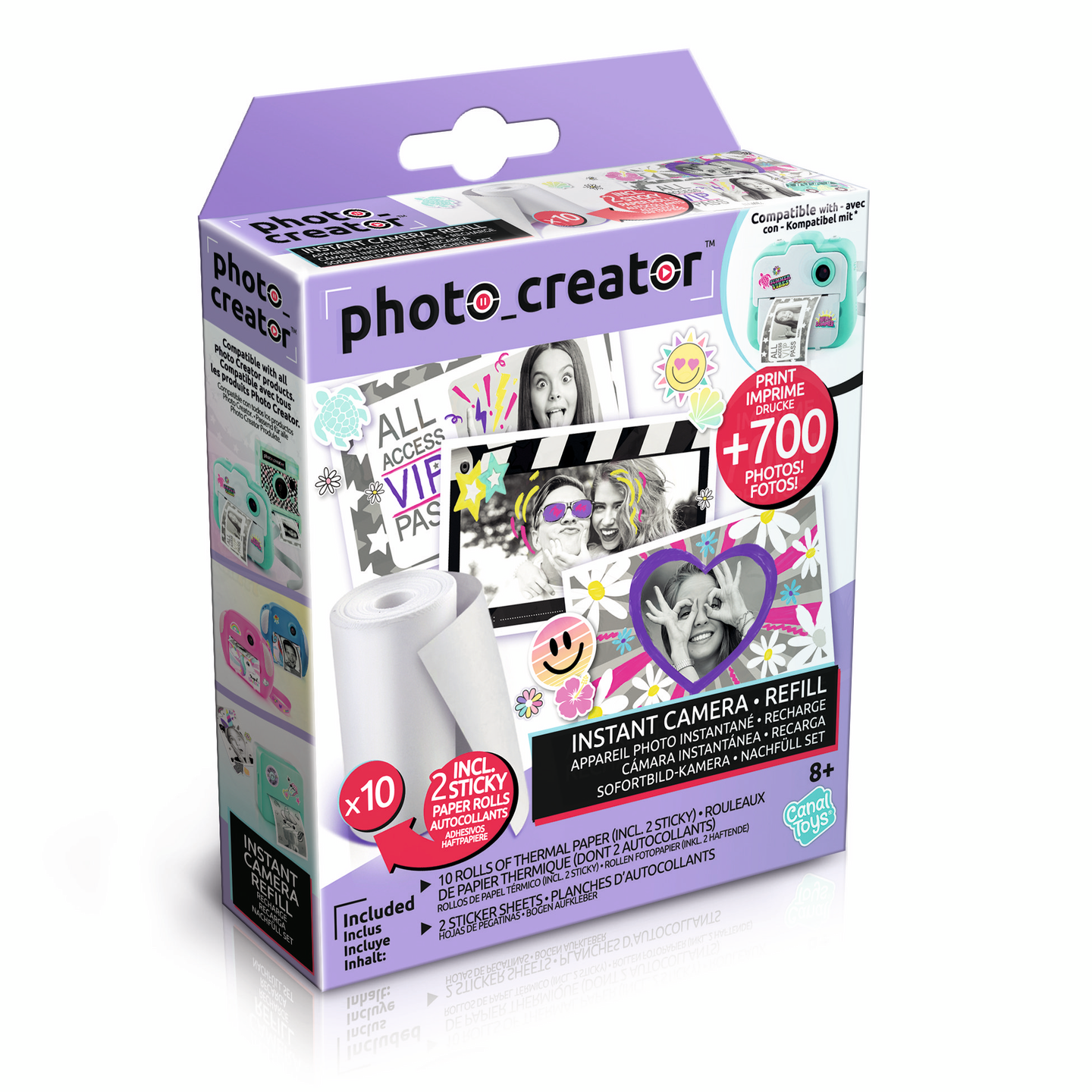 10 rullan täyttöpakkaus Studio Creator Instant kameraan. Sisältää kaksi tarrapaperirullaa ja 8 paperirullaa.Yhteensä 700+ kuvan tulostamiseen.