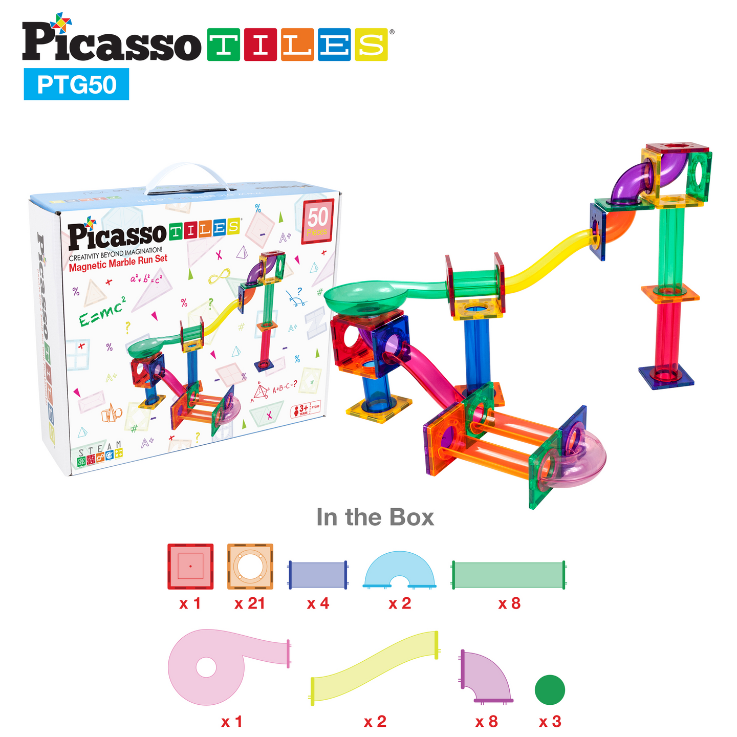 PicassoTiles-tuotteet auttavat lapsia kasvamaan ja kehittymään leikin sekä oman mielikuvituksen kautta! Tämä magneettikuularatasetti sisältää 50 eloisaa, värikästä, läpinäkyvää ja magneettista rakennuspalikkaa ja laattoja, jotka yhdistyvät intuitiivisesti käsien ja silmien koordinaation, motoristen taitojen harjoittamisen ja lapsen aivojen kehityksen mahdollistamiseksi. Ikäsuositus: 3+ v.