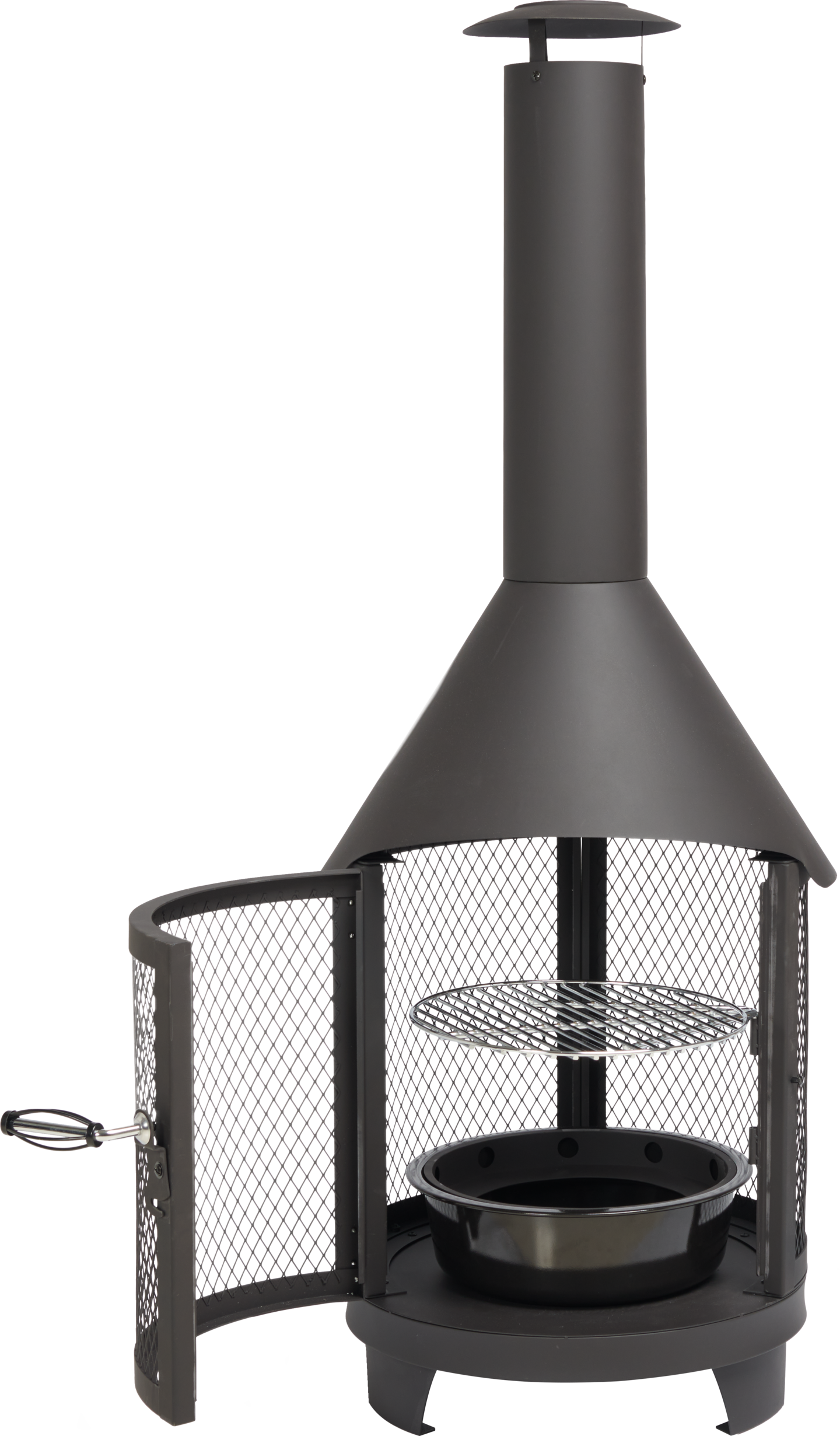 Näyttävä ulkotulisija pihamaalla luo mukavaa tunnelmaa ja kipinäverkko suojaa.