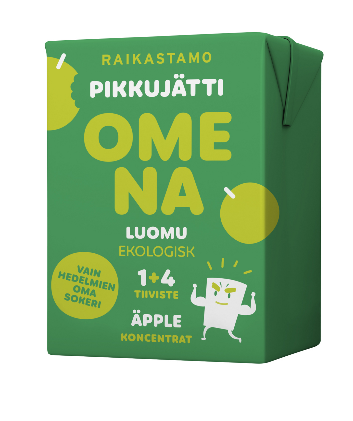 Pikkujätti on uudenlainen annospakattu mehutiiviste! Pienessä purkissa täysi litra Raikastamon parasta mehua – ilman lisättyä sokeria tai säilöntäaineita! Valmistettu Suomessa. Laimennussuhde 1+4.