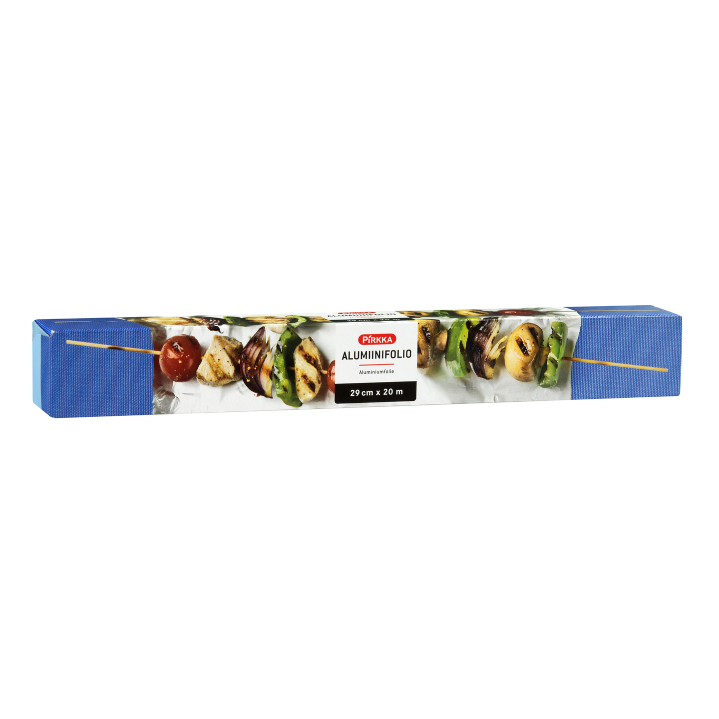 Pirkka alumiinifolio sopii astioiden suojaksi ja elintarvikkeiden kääreeksi säilytettäessä, grillattaessa ja pakastettaessa. Alumiinifolio säilyttää tuotteen aromit. Se ei läpäise rasvaa eikä nestettä. Alumiinifolio sopii myös askarteluun ja koristeluun.