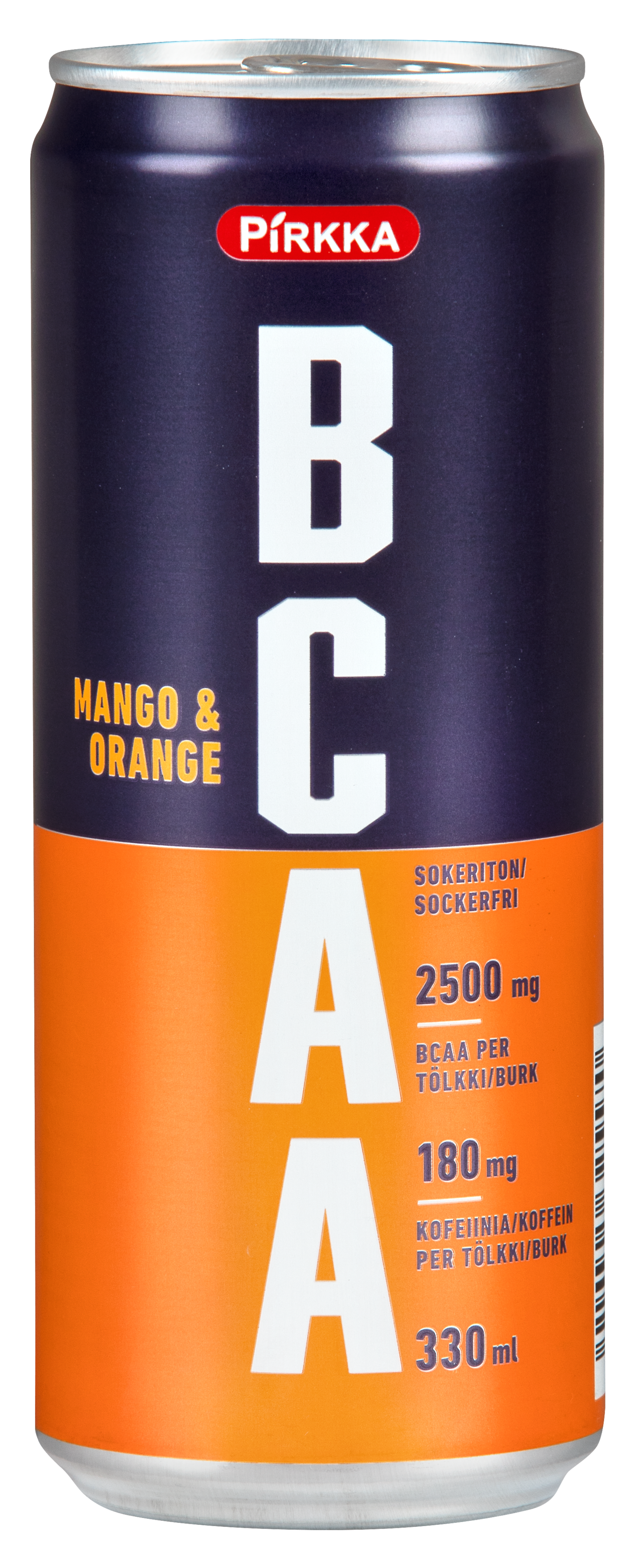 Mangon ja appelsiinin makuinen Pirkka BCAA-juoma mango-orange on hiilihapotettu aminohappo-vitamiinijuoma, joka sisältää myös kofeiinia. Raikas janonsammuttaja on sokeriton ja makeutettu sukraloosilla. Yksi tölkki sisältää BCAA-aminohappoja 2500 mg ja kofeiinia 180 mg. Tuotteen valmistaa Finn Spring Oy Keski-Pohjanmaalla Lestijärvellä.