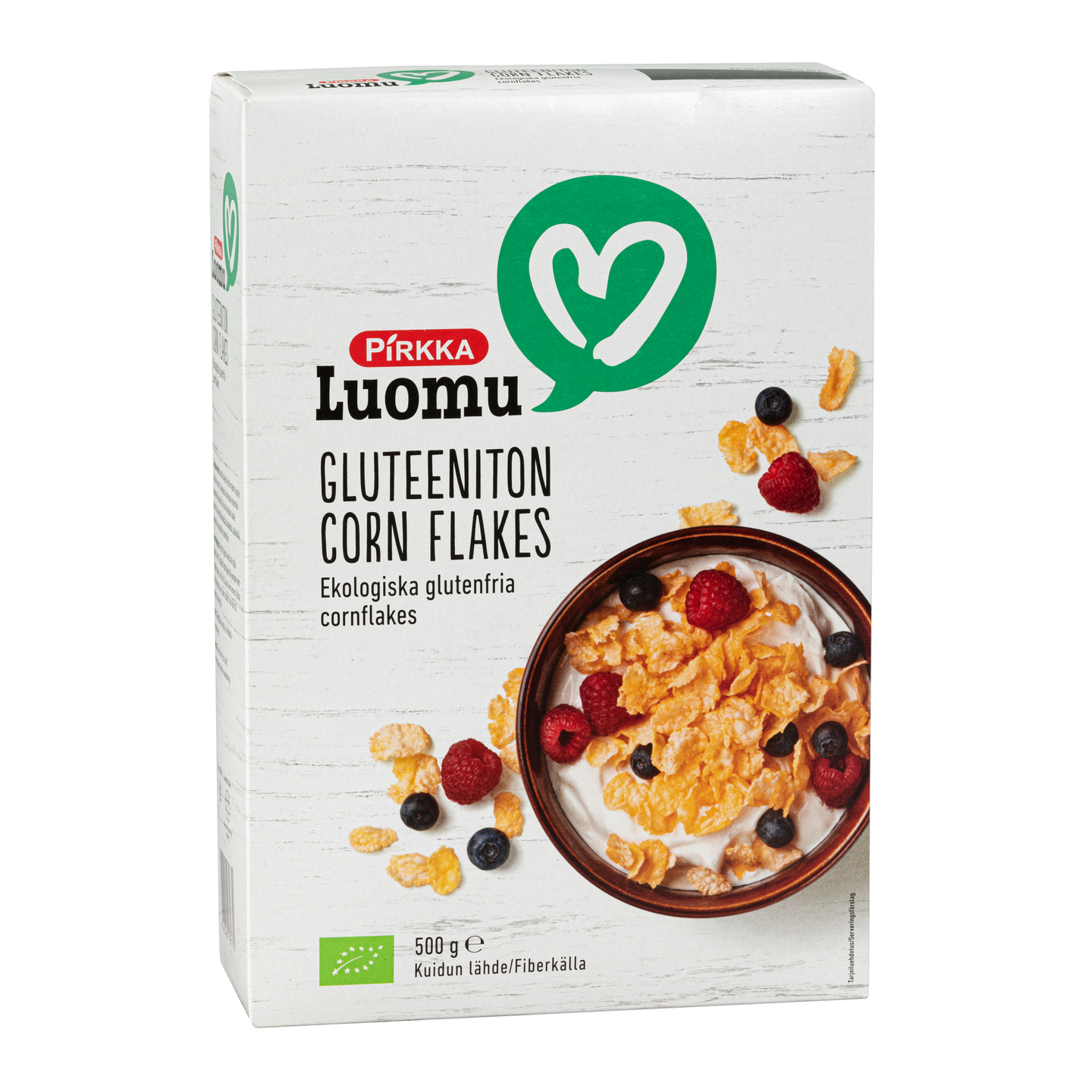 Pirkka Luomu gluteenittomat corn flakes maissilastut maistuvat maidon, kaurajuoman, jogurtin, marjojen, hedelmien ja hillojen kanssa.