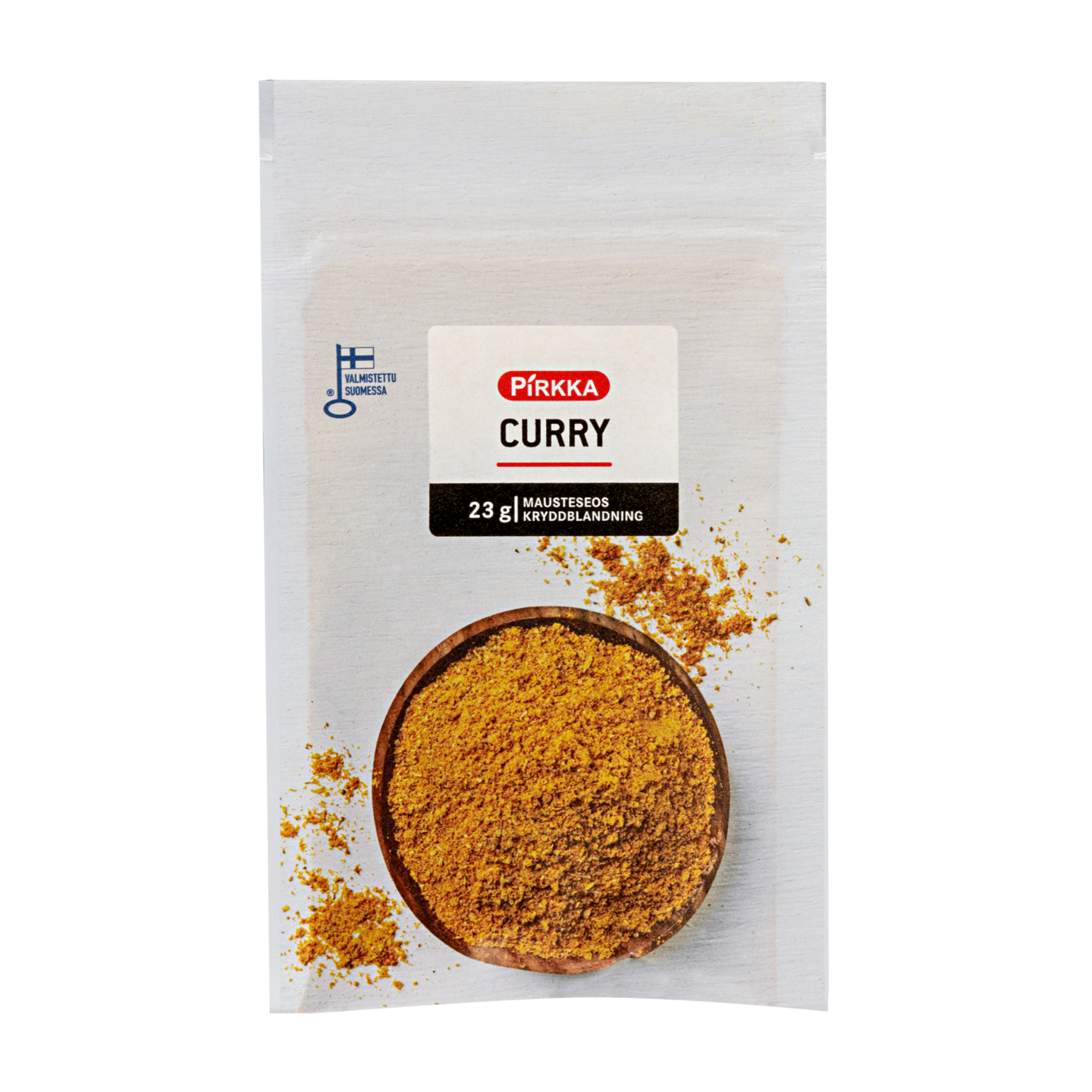 Pirkka curry sopii erityisesti kana- ja possuruokiin, riisiin sekä itämaisiin ruokiin. Pirkka maustesarjan aromikkaat mausteet on pakattu Suomessa. Maustepussit ovat uudelleen suljettavia ja kierrätyskelpoisia. Ne lajitellaan kartonkiin.