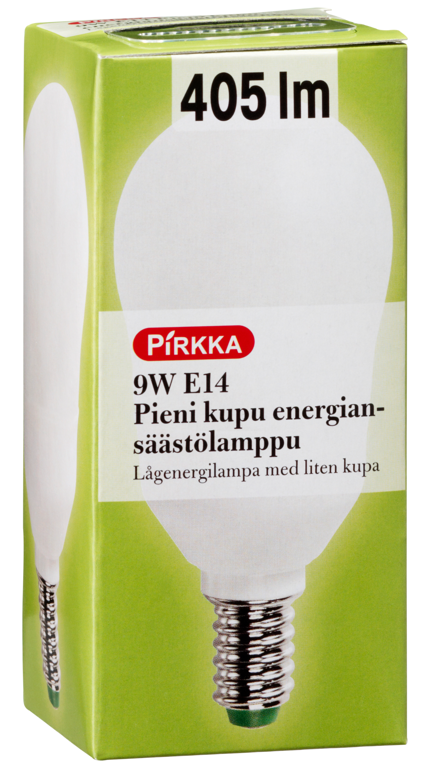 Pirkka 9W E14 energiansäästölamppu 405 lm pieni kupu