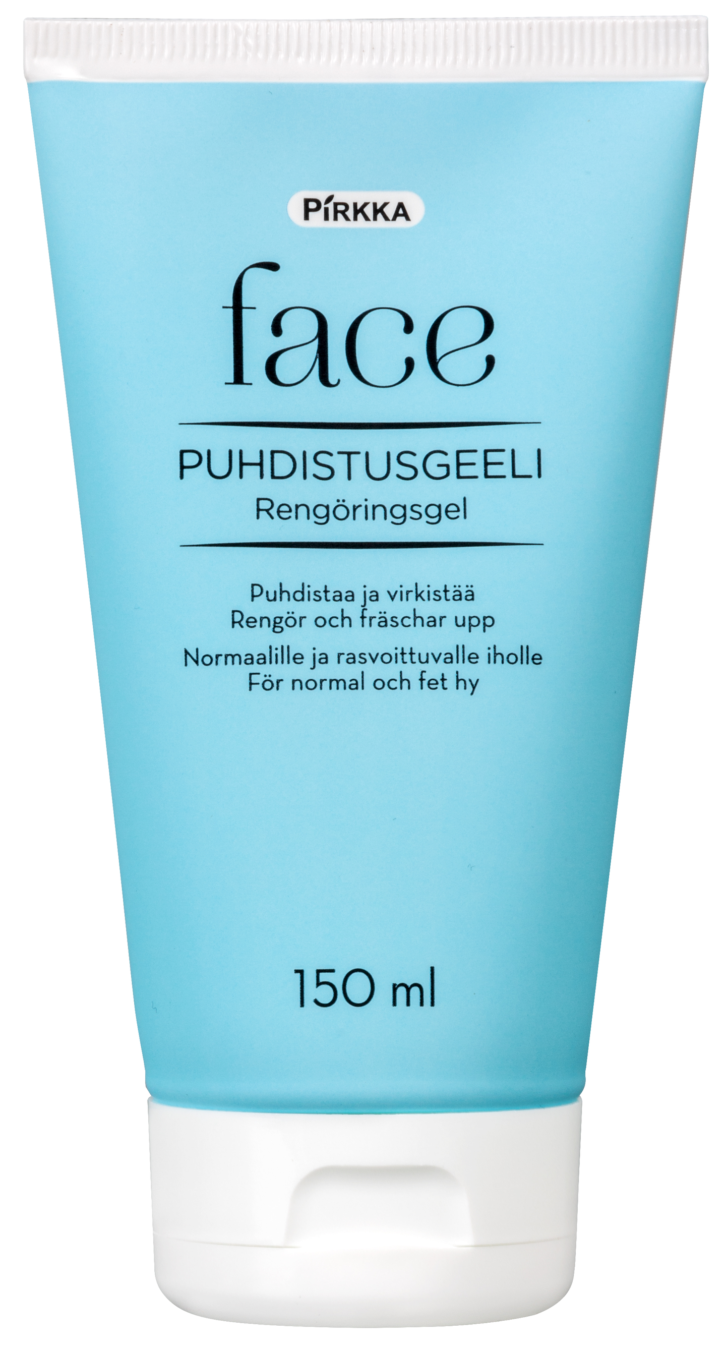 Pirkka puhdistusgeeli sopii kasvojen päivittäiseen puhdistukseen. Sen mieto, pehmeä vaahto poistaa hellävaraisesti ja perusteellisesti likahiukkaset ja muut epäpuhtaudet. Aloe vera suojaa ja kosteuttaa, kamomillauute rauhoittaa.