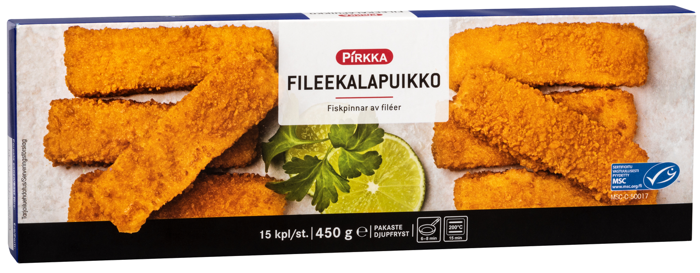 Pirkka fileekalapuikot on valmistettu alaskanseitifileestä. Ne maistuvat ruoaksi koko perheelle. Paista kalapuikot rapeiksi pannulla tai uunissa. Tarjoa perinteiseen tapaan perunamuusin kanssa tai kokoa vaikkapa astetta paremmat kalapuikko-ruisleipäburgerit. Valmistettu MSC-sertifioidusta kalasta.