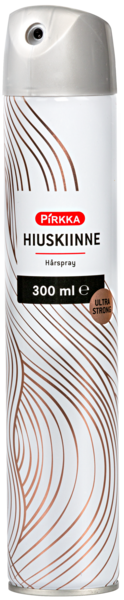 Pirkka hiuskiinne ultra strong viimeistelee kampauksen tehokkaasti koko päiväksi. Se suojaa kampausta tuulelta ja kosteudelta ja antaa hiuksille kiiltoa.