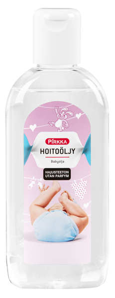 Pirkka hoitoöljy on hajusteeton ihoöljy pienen vauvan ihonhoitoon, joka kosteuttaa ja pehmentää ihoa. Hoitoöljyä sivellään iholle kylvyn tai suihkun jälkeen. Sopii myös vauvahierontaan.
