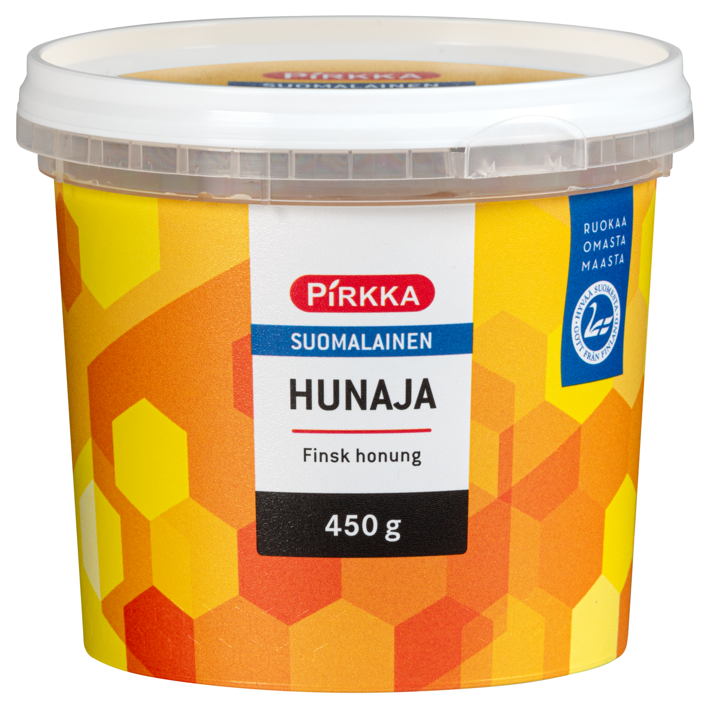 Pirkka suomalainen hunaja on monikukkahunajaa, joka syntyy, kun mehiläiset keräävät mettä eri kasveista. Se sopii käytettäväksi erilaisten juomien makeuttamiseen, leivontaan, jälkiruokiin salaatinkastikkeisiin ja marinadeihin. Suomalainen hunaja kiteytyy luontaisesti säilytyksen aikana. Hunajaa ei suositella annettavaksi alle yksivuotiaille lapsille.