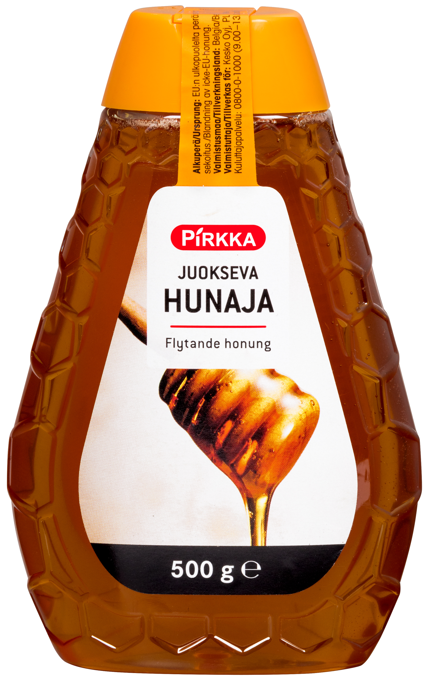 Pirkka juokseva hunaja (alkuperä muu kuin EU: Ukraina ja Etelä-Amerikka) sopii mm. juomien ja jälkiruokien makeuttamiseen, leivontaan sekä ruoanvalmistukseen. Hunajaa ei suositella annettavaksi alle yksivuotiaille lapsille.