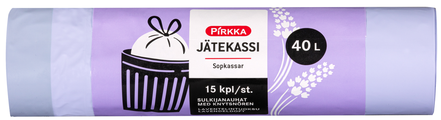 Pirkka jätekassi 40l 15kpl laventelintuoksu