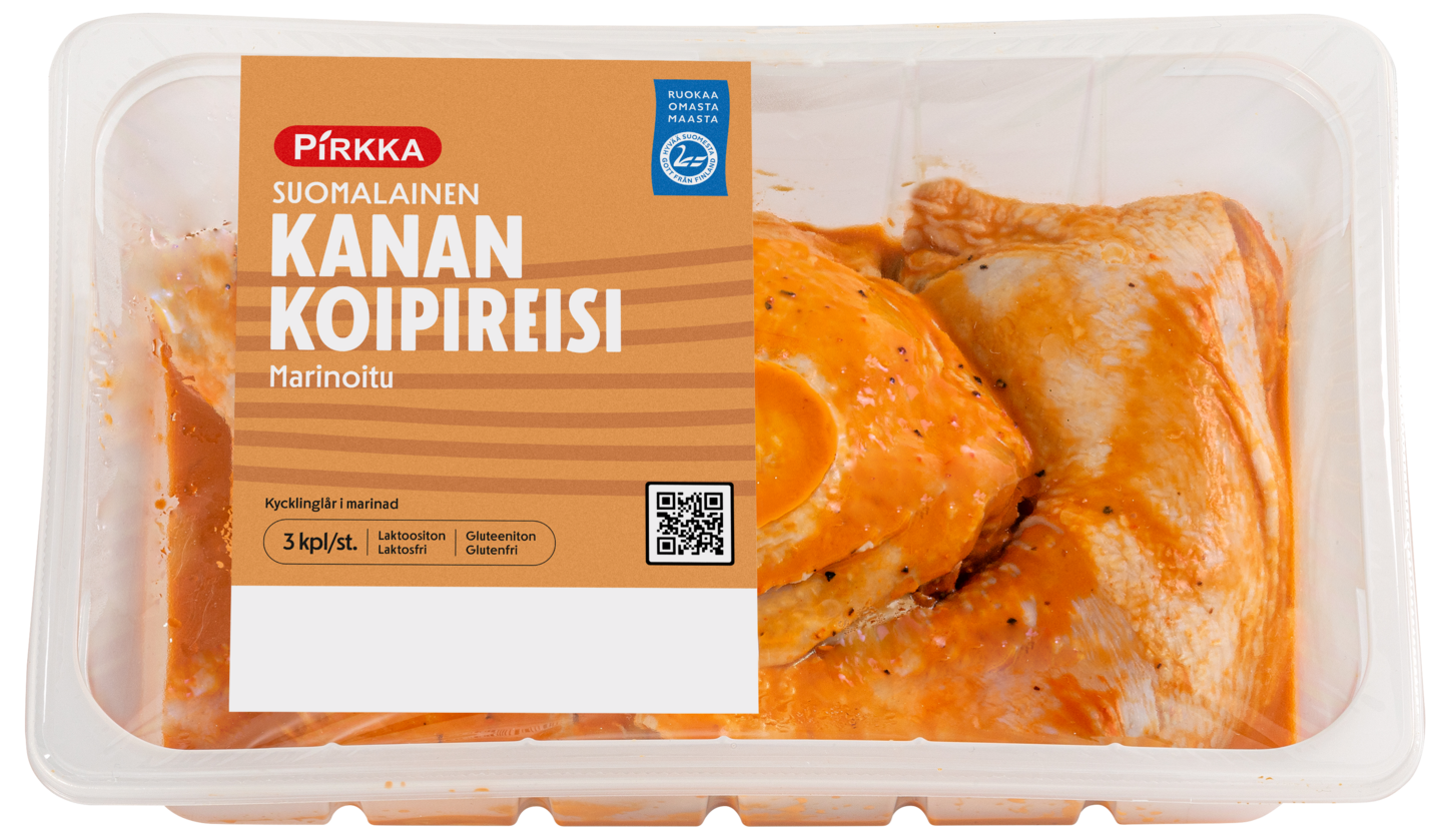 Marinoitu kanan koipireisi on helppoa ja maistuvaa ruokaa kypsentää uunissa tai grillissä. Suomalaista lihaa. Yksittäisen tuotteen keskimääräinen paino on 1 200 g.