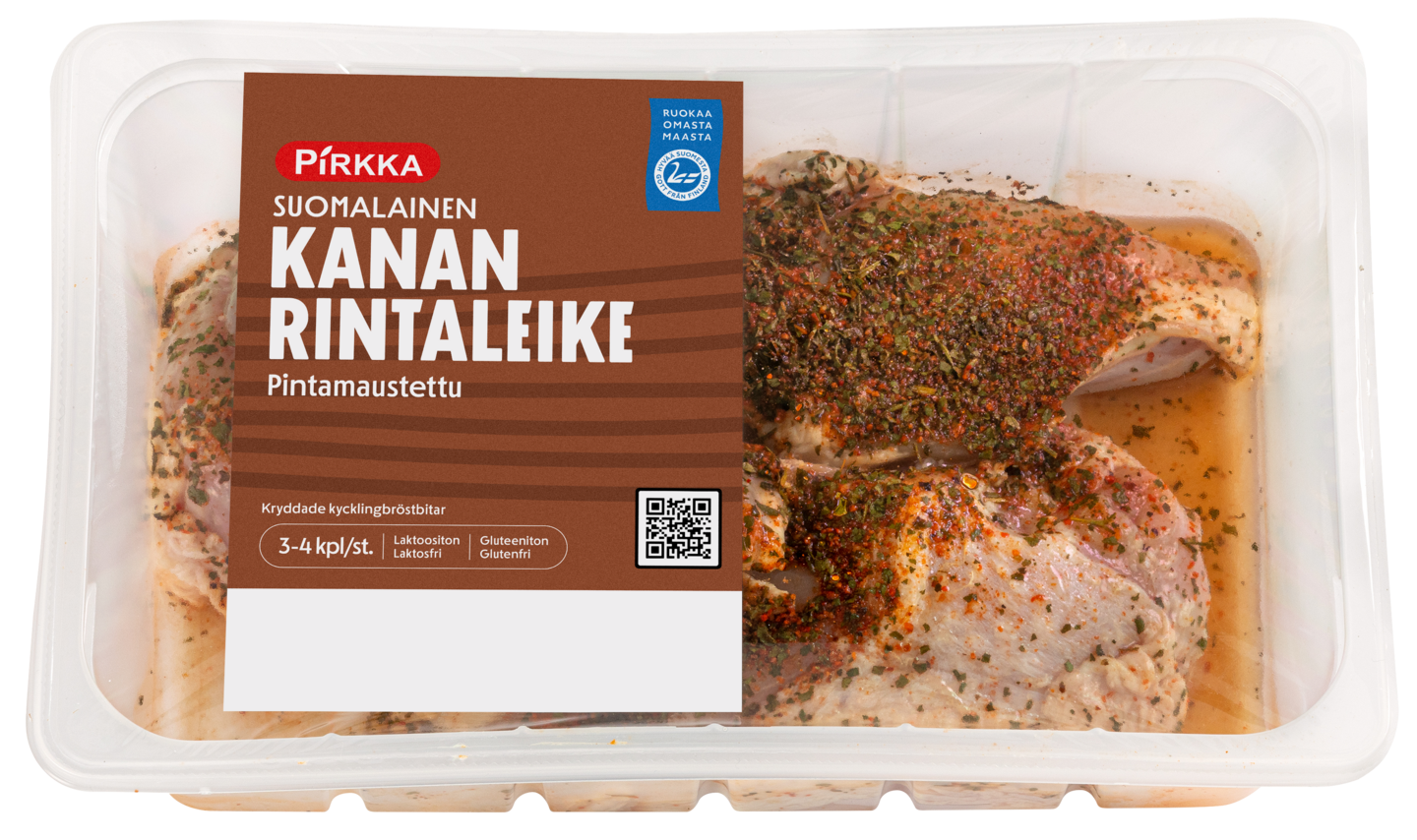Pintamaustetut kanan rintaleikkeet ovat sellaisenaan paistovalmiita. Suomalaista lihaa. Yksittäisen tuotteen keskimääräinen paino on 1 100 g.