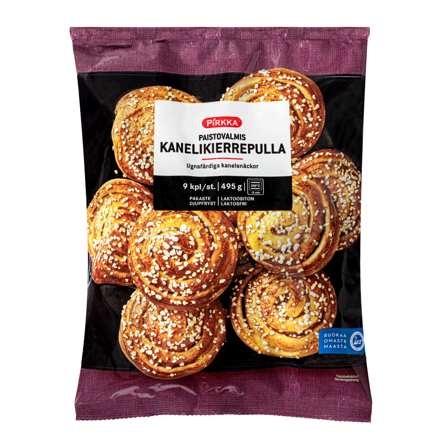 Pirkka kanelikierrepullat ovat paistovalmiita kierrepullia, jotka valmistuvat uunissa noin 15 minuutissa. Uunituore pulla on aina yhtä herkullinen tarjottava! Tuote on laktoositon. Valmistettu Suomessa.