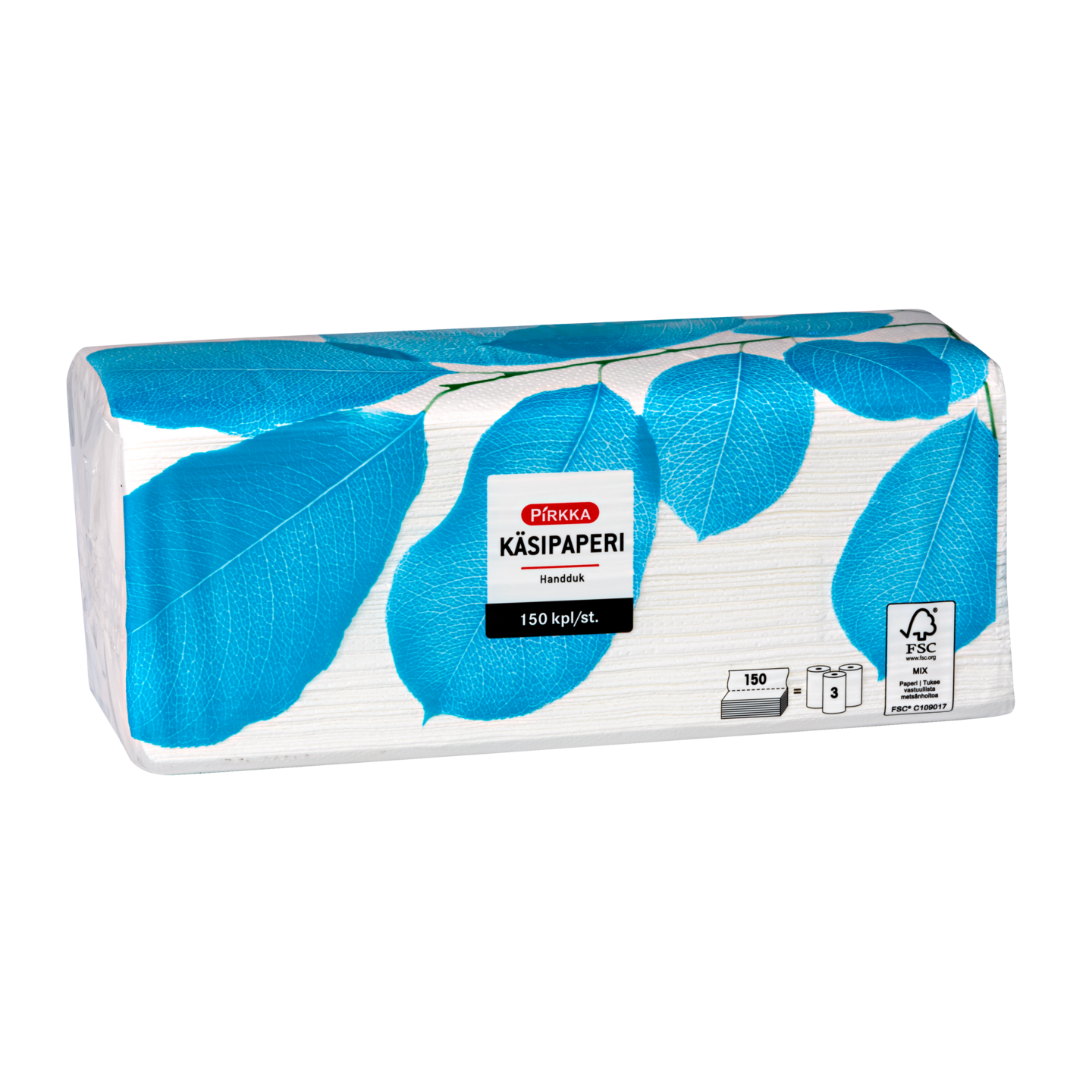 Pirkka käsipaperi on käytännöllinen ja hygieeninen talouspaperi. Pakkauksessa on 150 arkkia. Kaksinkertainen paperi on valmistettu ensikuidusta ja se on laadultaan kestävää sekä imukykyistä. Pakkauksessa on kätevä repäisyreuna, joten yksittäinen paperi on helppo ottaa pakkauksestaan.