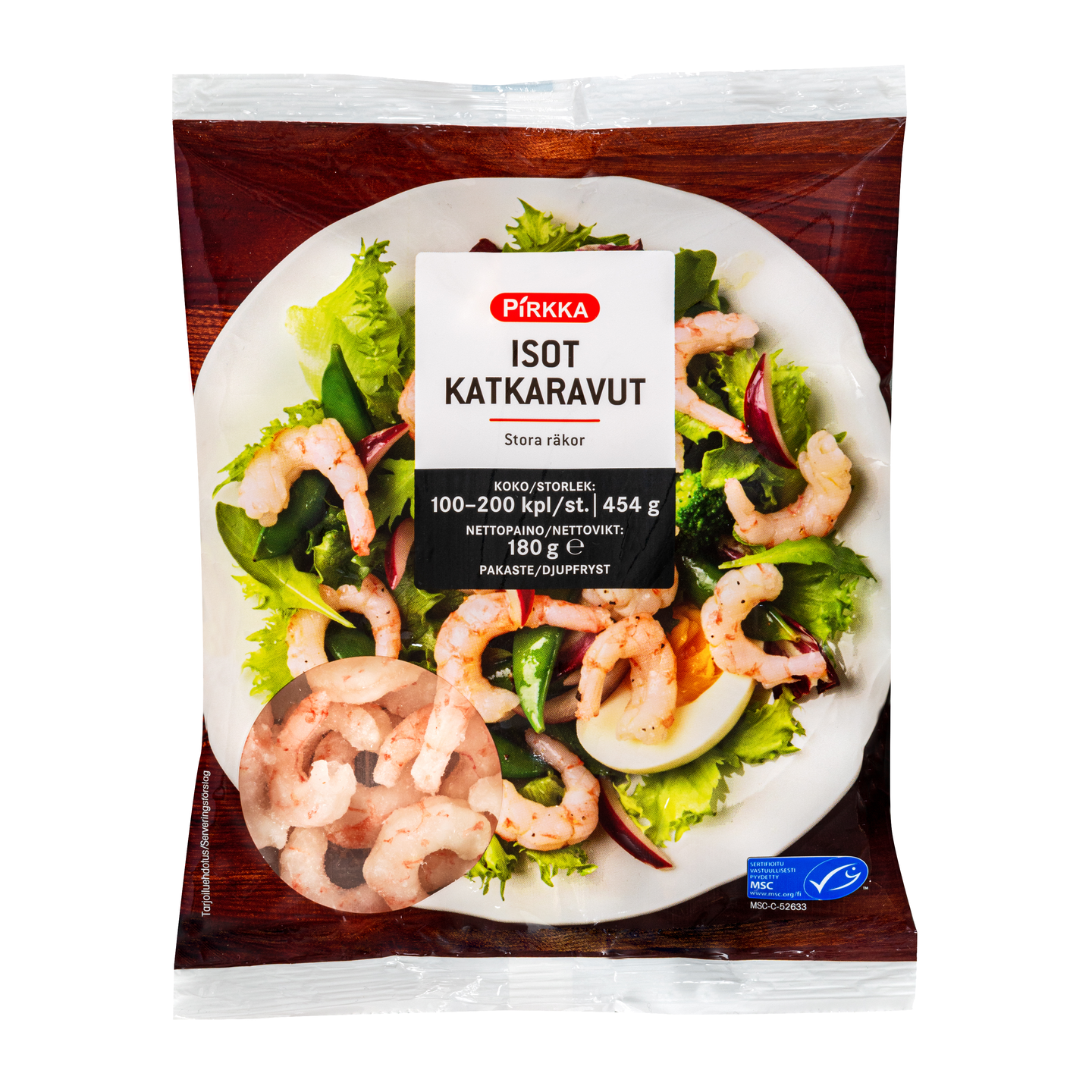 Pirkka katkaravut sopivat sulatettuina salaatteihin, pastoihin, pizzoihin, täytteisiin, wokkeihin ja koristeeksi voilepäkakun päälle sekä ruokaisien voileipien (esim. toast skagenin) raaka-aineeksi.