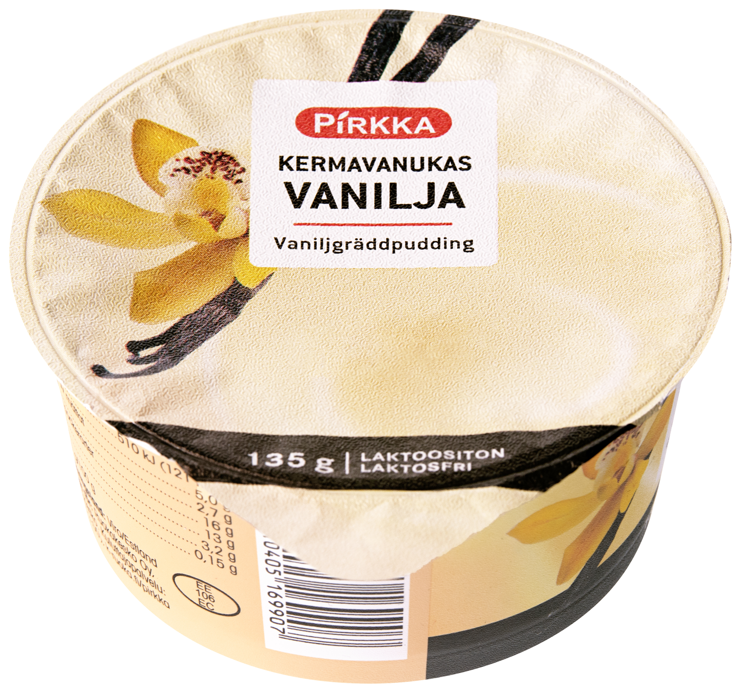 Pirkka kermavanukas sopii jälkiruuaksi ja muuhun herkutteluun. Tuote on laktoositon.