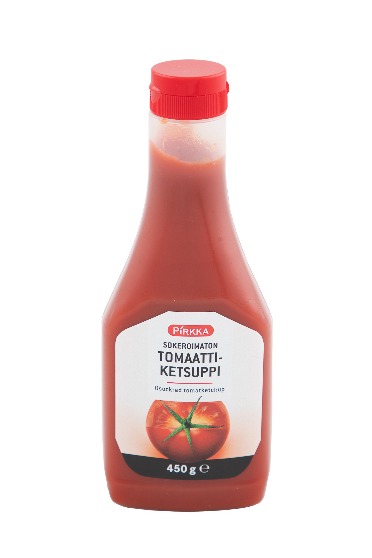 Pirkka sokeroimaton tomaattiketsuppi sopii pöytämausteeksi ja ruokien maustamiseen.